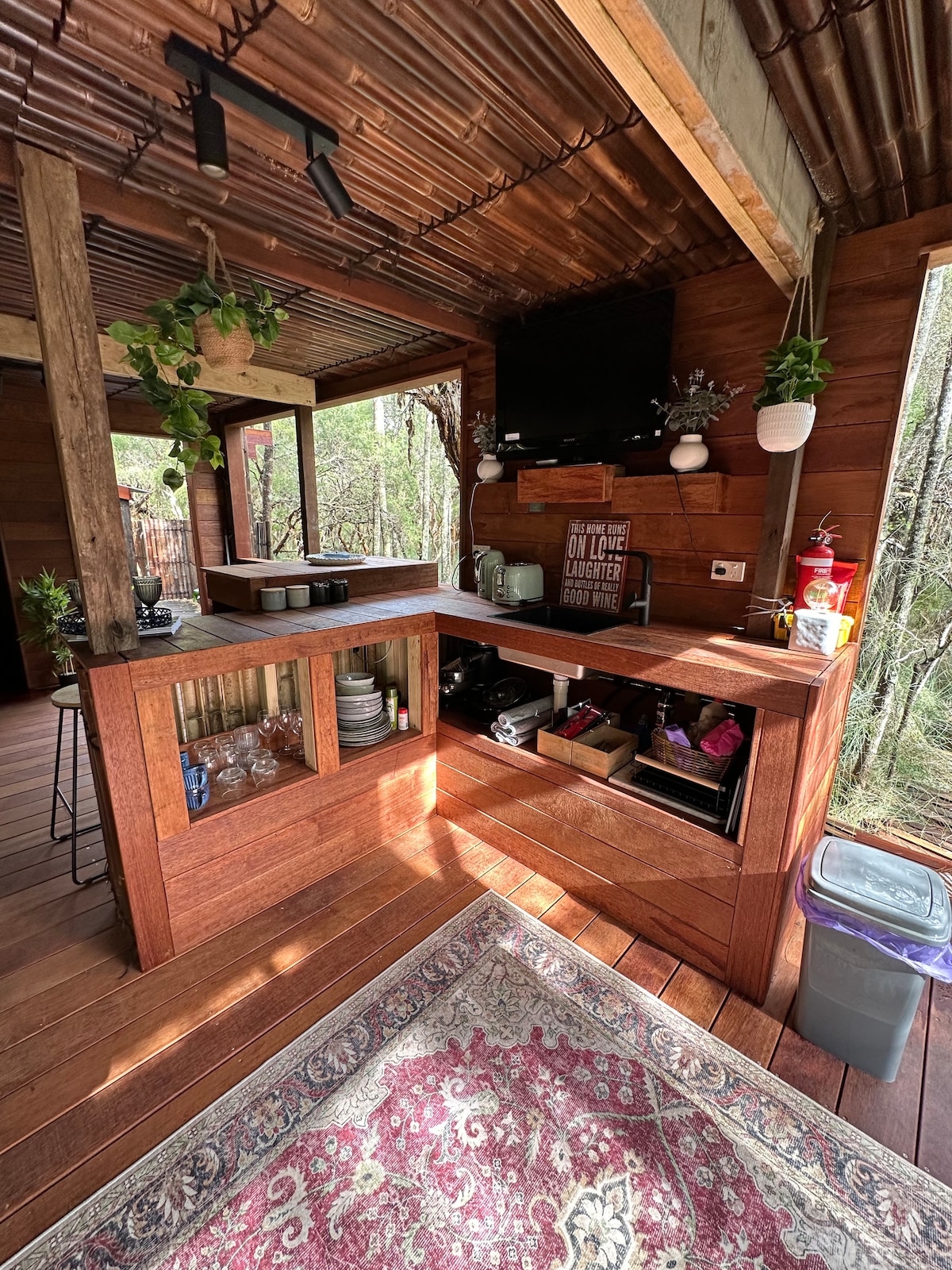 Açık hava tutkunları için tasarlanmış bu pitoresk inziva yerine kaçın. Yıldızların altında açık havada bir banyo yaparken bir kadeh şarapla gevşeyebileceğiniz, tüm gün ağ yatakta dinlenebileceğiniz veya samimi bir film gecesi geçirebileceğiniz bu doğal ortamın romantik atmosferini kucaklayın. Mükemmel kaçamağınız burada. Akşam yemeğinde, ateş çukurunun yanında barbekü yapabilir veya eve sipariş verebilirsiniz. Şebeke dışı cennetimizde konaklamanız boyunca tam bir mahremiyet ve dinginliğin tadını çıkarın