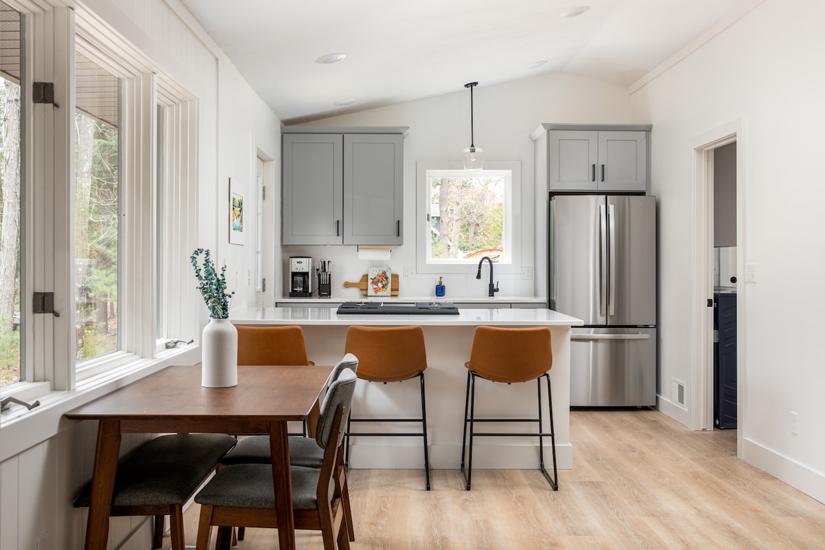 🌊 Göl kenarında özel modern dağ evi 🧘 Rahatlamak için 6 kişilik fıçı sauna 🚤 Kürek sörfü ve kano dahildir 🔥 Şömine ve bilardo masası olan rahat salon 📍 Sleeping Bear'a 15 dakika, TC'ye 20 dakika Catered Stays Rentals ev sahipliğinde ideal misafir deneyimini yaratıyoruz. İçeride ve dışarıda rahatlamak için konforlu alanların yanı sıra mevsimlik kanoların ve küreklerin (mayıs-eylül) keyfini çıkarın. Aileler, arkadaşlar veya evcil hayvanların gevşemesi ve anılar biriktirmesi için mükemmeldir.