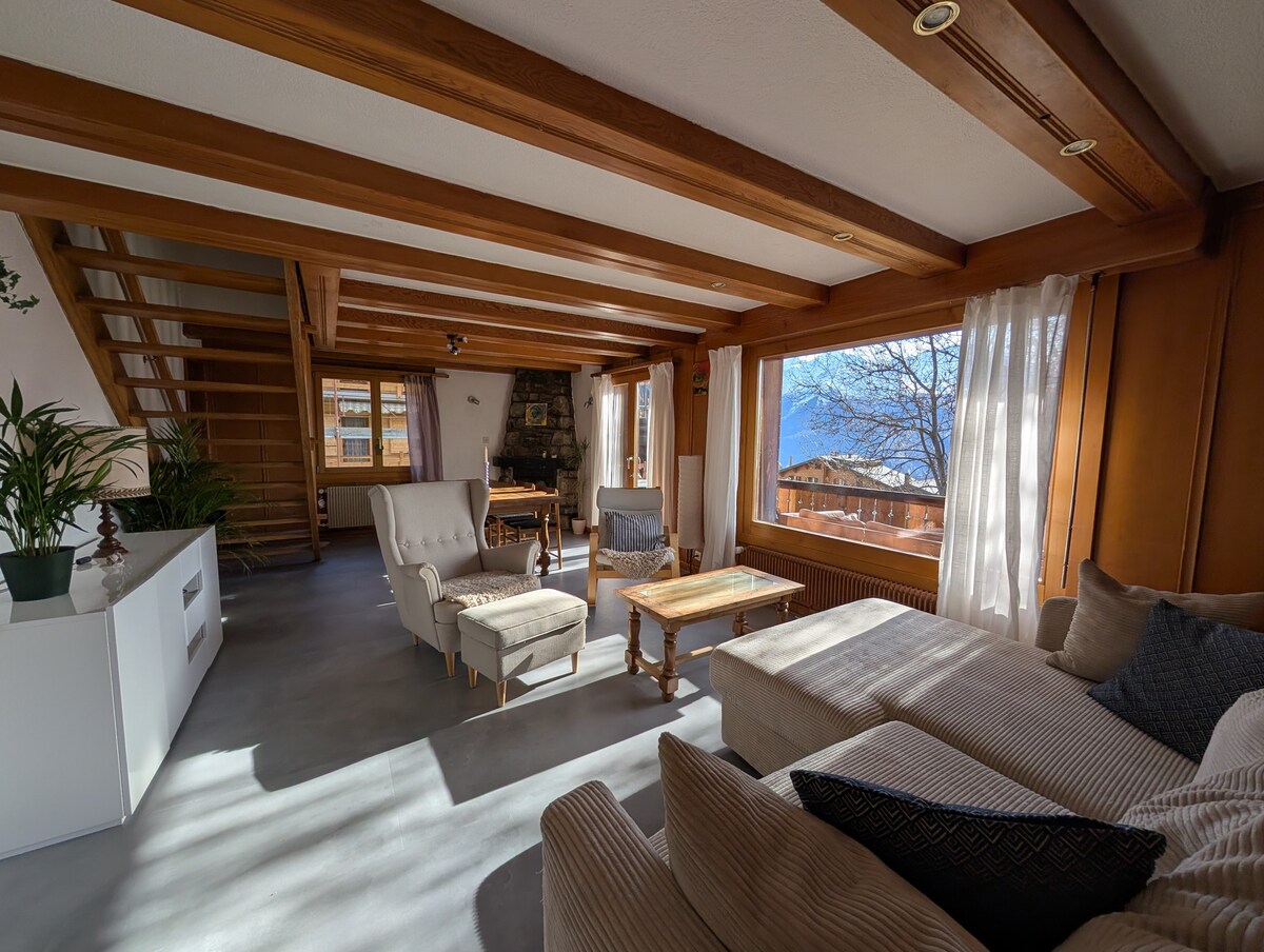 Bu küçük, özel İsviçre dağ evi, bir ya da iki kişi için rahat bir dinlenme yeridir. Balkon, Rhone Vadisi ve Valais İsviçre Alpleri'nin muhteşem bir manzarasını sunar. Doğa severler veya sadece dinlenmek ve İsviçre dağ havasını solumak için uzaklaşmak isteyenler için idealdir. Dağda yürüyüş veya doğa yürüyüşü, bisiklete binme, kar ayakkabısıyla yürüyüş ve hatta kışın kros kayağı için dağ evinden çıkılabilir. Kayak pistlerine ve termal banyolara arabayla yaklaşık 30 dakikada ulaşılabilir.