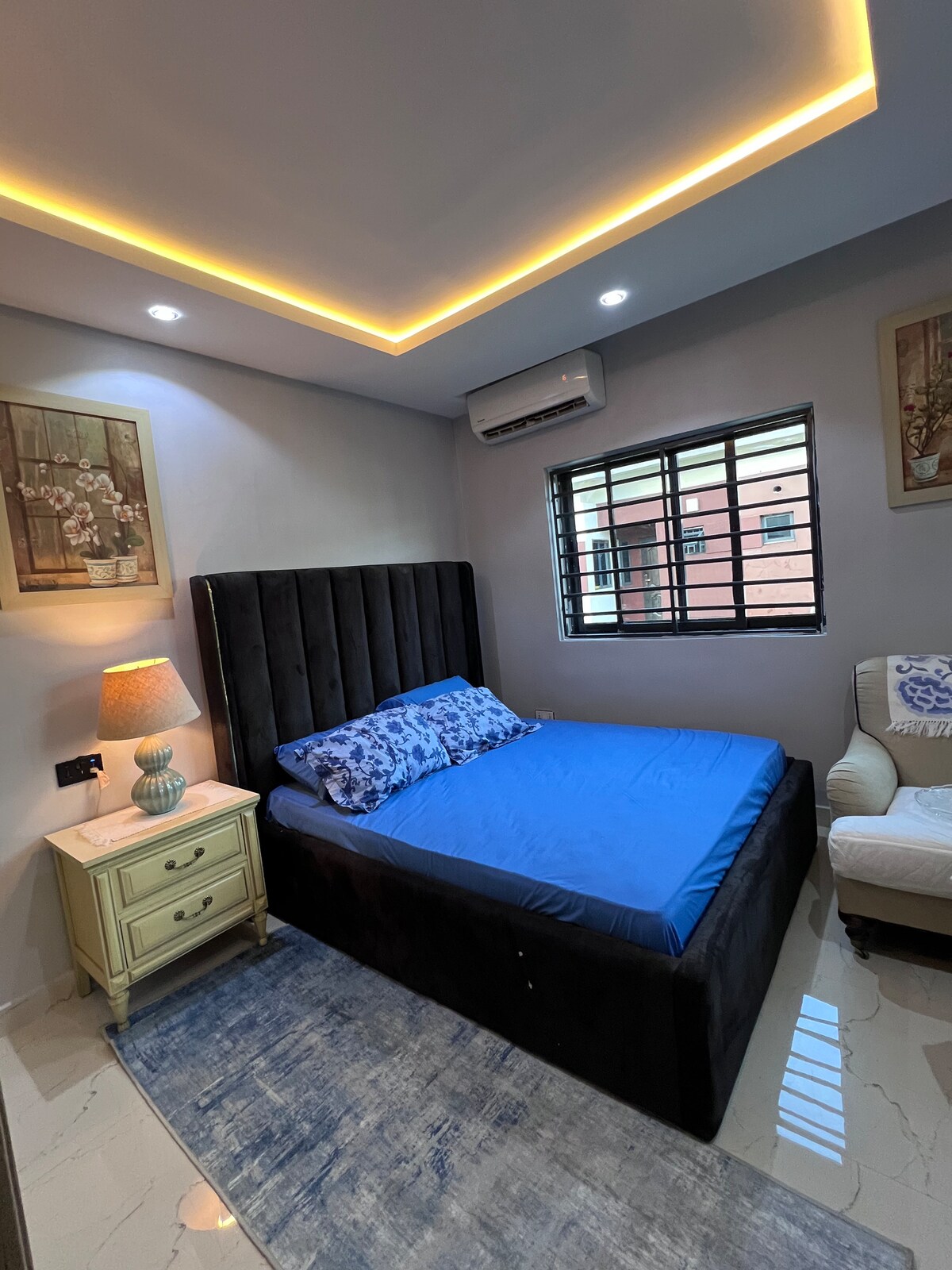 Bu eşsiz yerin kendine özgü bir tarzı var. 1 yatak odalı ve oturma odalı otel olanakları sunan möbleli bir dairedir. Olanaklar şunları içerir ; - 7/24 güç kaynağı - Duman aspiratörü - Mikrodalga fırın - CCTV kamera - DSTV/Netflix - TV konsolu. - su ısıtıcısı - bilardo tahtası - Masa tenisi - çamaşır makinesi. - Geniş park alanı - Okuma sandalyeleri ve masaları. - Gazlı ocak - Dondurucu.
