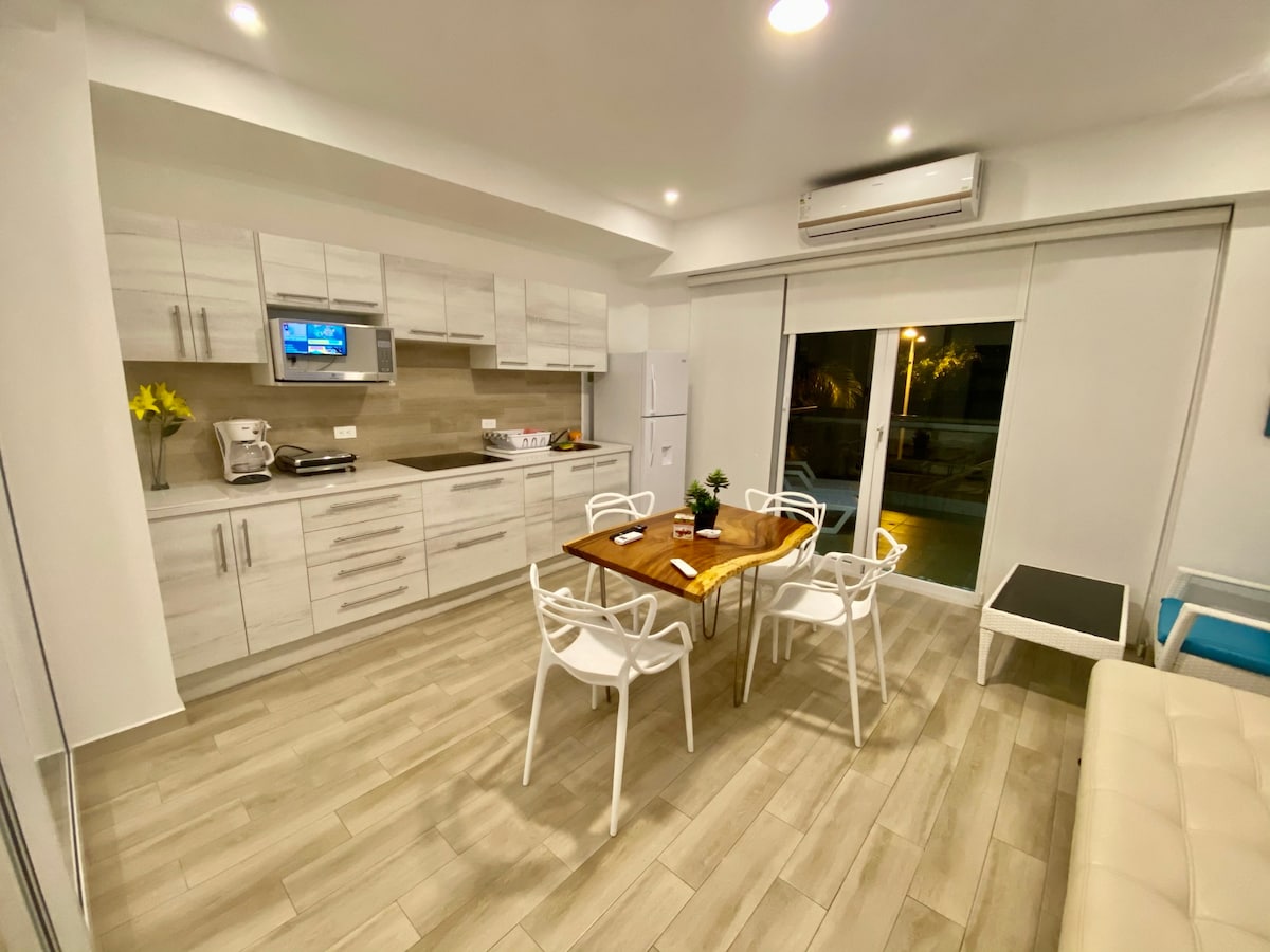 Birinci katta klima bulunan özel süit konfor, yüzme havuzlarına, sosyal alanlara ve plaja doğrudan erişim sunar. Playa Azul 1, Tonsupa Plajı'nın sonunda birinci sınıf bir konumda yer alır ve deniz kenarında dinlenmek ve güvenlik arayan aileler, çiftler veya gruplar için idealdir. ✔ Havuzlar / Kortlar / Teras / Çardak Plaja ✔ doğrudan erişim. ✔ 27/7 Güvenlik ✔ Yakındaki restoranlar ve sosyal alanlar Okyanus kıyısında rezervasyon yapın ve yaşayın. Uzaklaşmak ve eğlenmek için ideal.