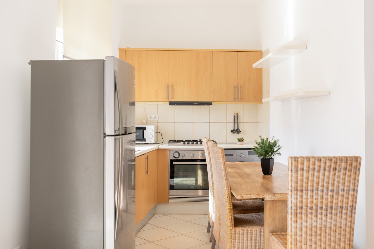 Plaja/havuza 60 m mesafede, klimalı rahat 1 yatak odası.
