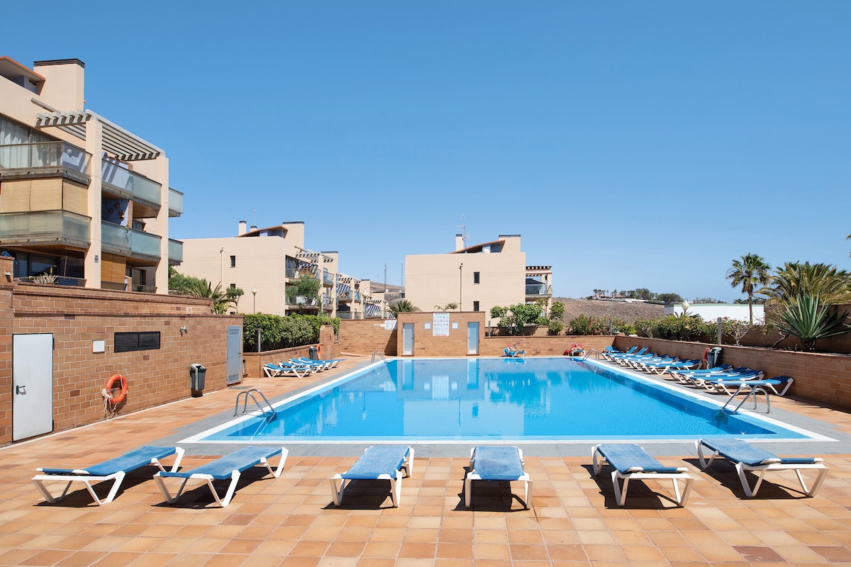 Daire, doyumsuz bir deniz manzarasına sahiptir ve Fuerteventura'nın güneyindeki Sotavento plajına yakın korunan bir alanın ortasında yer almaktadır. Yakınlarda ince altın kumu ve kristal berraklığındaki turkuaz suları olan bakir bir plaj bulunmaktadır. Çeşitli su sporları yapmak için ideal bir yerdir. Daire tam donanımlıdır. Açık yüzme havuzu, şezlonglar (ücretsiz) ve güneşlenmek için geniş teraslar vardır. İngilizce/ GE/SP/FR/DU / LU konuşuyoruz