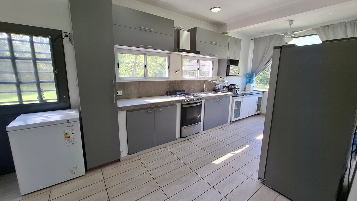 Haras del Sol'da bohem tarzda ev, aileler ve arkadaşlar için ideal. 4 yatak odası, 3 banyo, bir Escosesa duş ve bir jakuzi. Tuvalet, entegre mutfak ve oturma odası, masa, ızgaralı galeri ve büyük park. Jakuzi ve ısıtmalı havuz. Tüm ortamlarda kablosuz internet bağlantısı, akıllı TV'ler, klima ve ısıtma. Tam donanımlı. 24 saat güvenlik, kortlar, spor salonu, restoran, havuz, plaza ve daha fazlasına sahip özel semt. Pilar'da konfor, doğa ve huzurun tadını çıkarın. Minimum konaklama süresi 20 gece