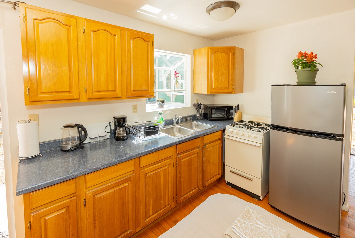 Bu özel ve ferah stüdyo misafir evi konutumuzun yanında bulunmaktadır. Westhaven semtinde 5 dönümlük yüksek kızılağaç ağaçları ve yemyeşil yaban mersini çalıları arasında yer alan bu yer, yalnız gezginler veya çiftler için mükemmeldir (ancak lütfen çocuklar veya evcil hayvanlarla seyahat edenler için uygun olmadığını unutmayın). Redwoods Ulusal Ormanı'nı, yakındaki Moonstone plajını ve manzaralı Trinidad şehir merkezini keşfetmek için ideal bir üs. Renkli koi balıklarıyla dolu yeni yenilenmiş göletler burayı ekstra özel kılıyor!