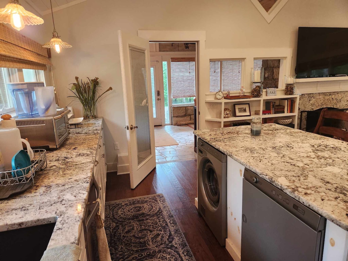 Güzel üçgen evimiz Büyük Dumanlı Dağlar'ın eteklerindeki Cherokee Gölü'nde bulunmaktadır. 4 -6 kişi barındırabilir. Bu daire, üç birim tarafından paylaşılan tekne iskelesine sahip sessiz 1 dönümlük bir arsada birlikte oturan üç farklı evden biridir (hepsi Airbnb kiralıktır). A çerçevesi, elektrikli ocak, tonlarca veranda, ızgara ve muhteşem bir manzaraya sahip bir küçük mutfağa sahiptir.