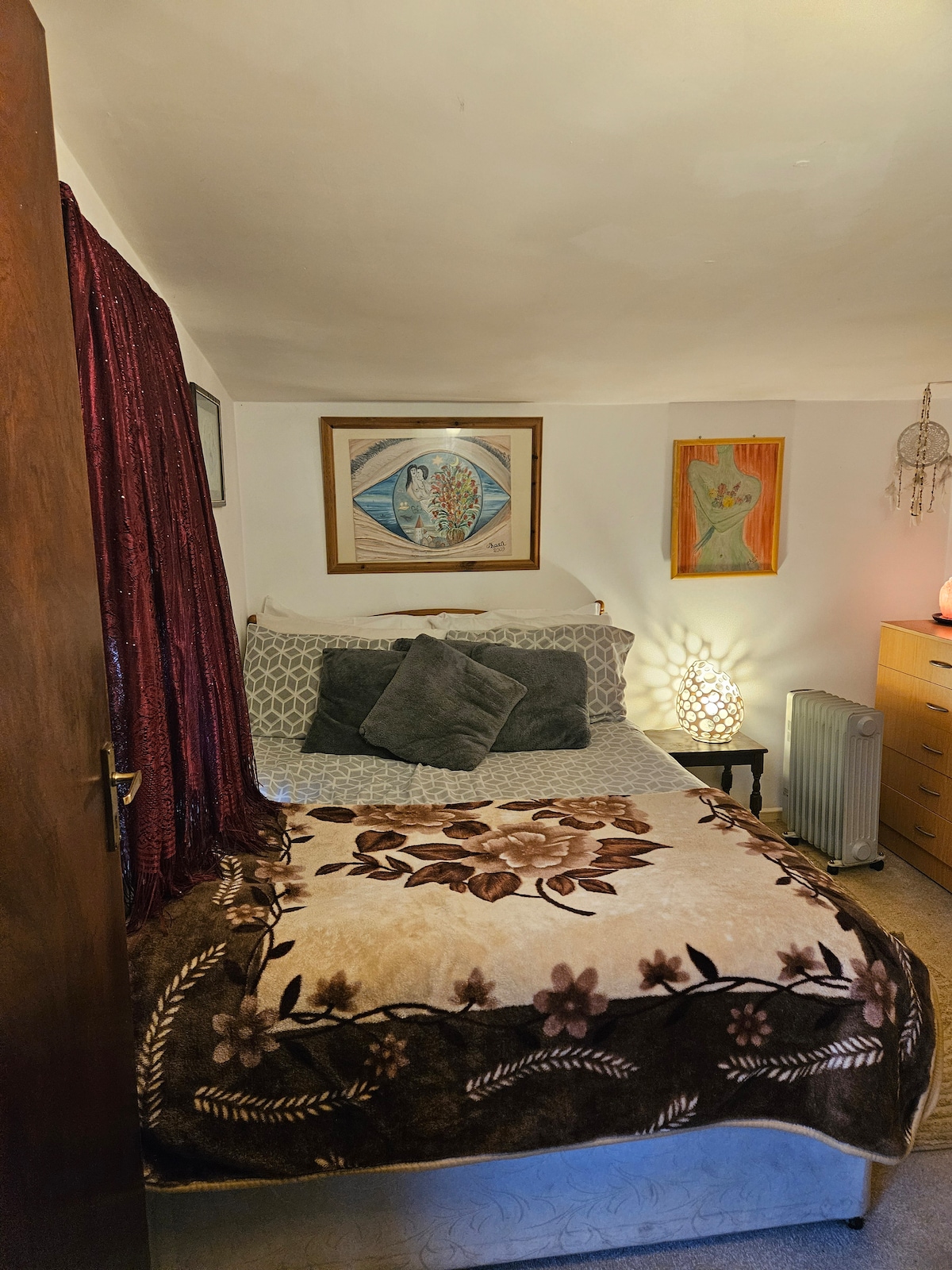 Harika ulaşım bağlantıları olan huzurlu bir evde oda.