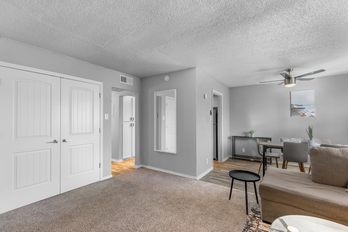 AT&T ve Six Flags yakınında şık 1 yatak odalı/1 banyolu daire