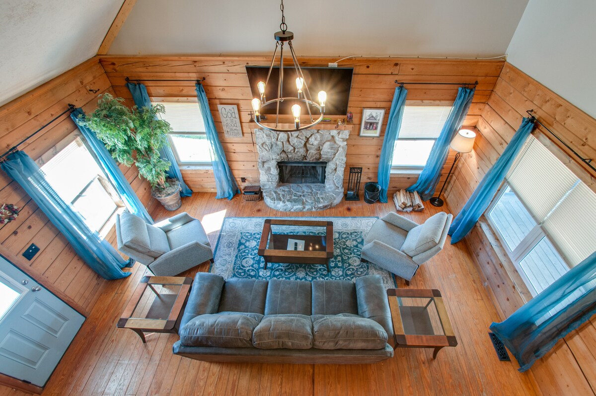 Dokuz dönümlük ormanın ortasında yer alan bu YEPYENİ araba evi, mimari kirişlere sahip yüksek katedral tavanlarına, arduvazla çevrili odun şöminesine ve 65 inç akıllı televizyona sahiptir. Mutfakta paslanmaz çelik cihazlar ve kasap tezgahları bulunmaktadır. Bir yatak odasında king boy yatak, diğerinde ise muhteşem queen boy kızak yatak bulunmaktadır. Evin arkasındaki teras ormanın güzel manzaralarını sunar. Ateş çukuru alanı grubunuz için kesinlikle çok iyi olacak. Fiber internet!