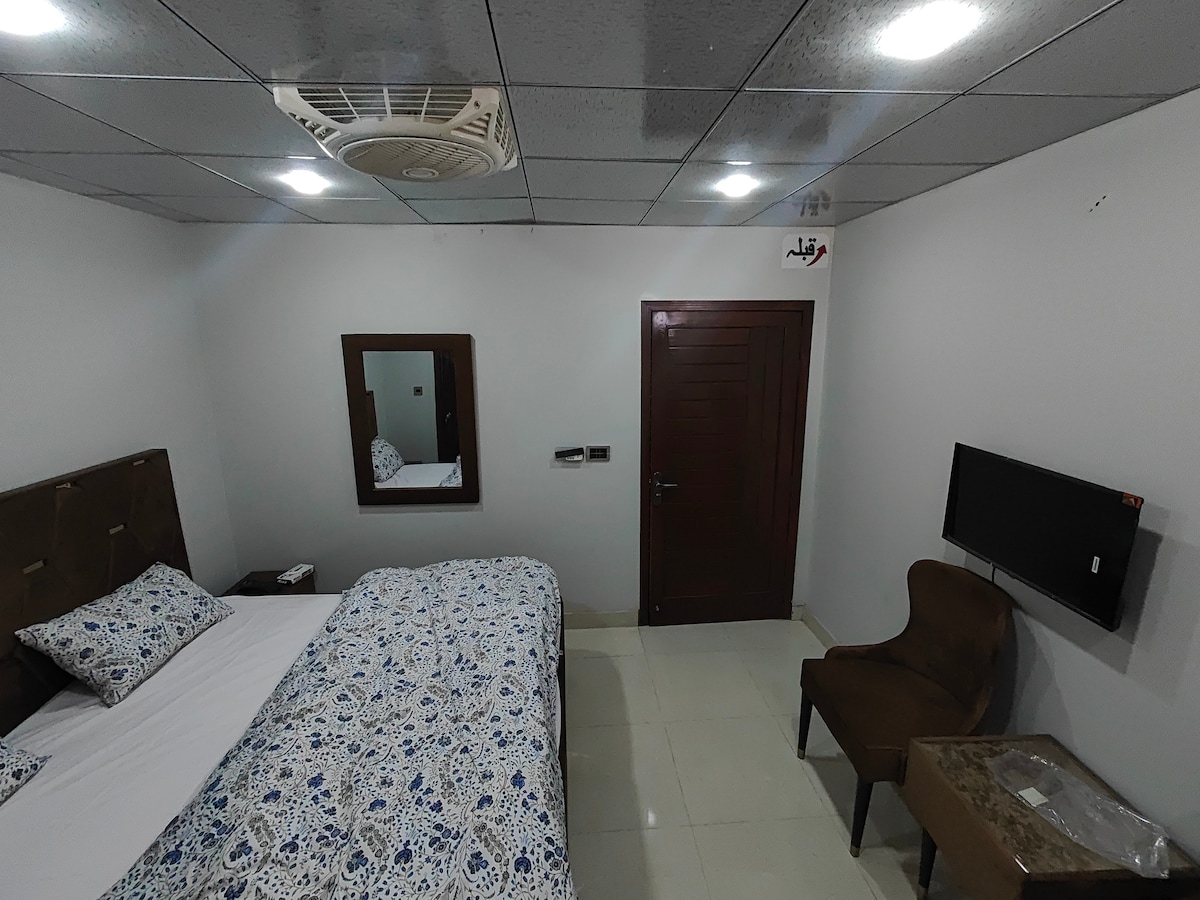 ✨Experience Royal Comfort in Faisalabad 🛏 Bed + closet + dressing table + fridge + bath with mini pool | WiFi 🔐Gated community with 24/7 security 🎟 1-day Circle Club pass for 2(Paid, Optional) : gym, sauna, pool, squash, badminton, table tennis Note: on booking of 7+ nights get free complimentary 1 day pass for 2 📍 Near Lyallpur Galleria, Approx 20 min to Clock Tower & 45 min to Airport 👨👩👧 Families & married couples only | ID required | No parties/bachelor groups