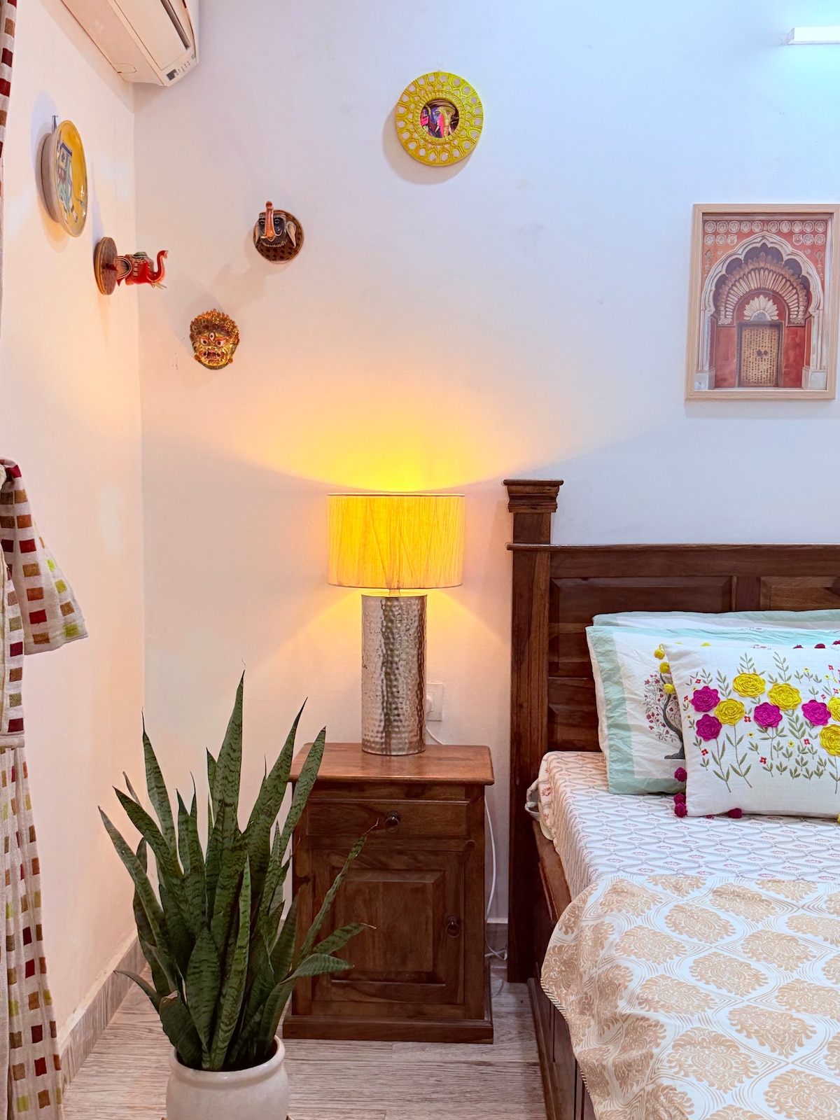 Ivy Home isn't a place, it’s a feeling "The magic thing about home is that it feels good to leave, and it feels even better to come back" An entire floor with a lit garden, super cosy rooms and projector room with beautiful decor for a one of a kind personalised movie experience. The verandah has a comfortable seating arrangement with table, chairs and some beautiful plants and trees making it a great spot for a chill evening with family/frnds even for a pleasant dinner date with your partner
