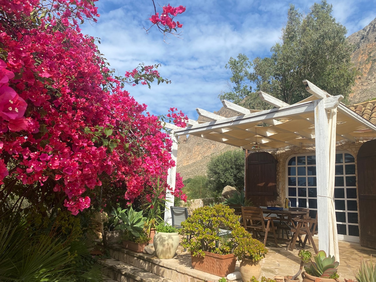 Monte Cofano doğal koruma alanında, denizden yaklaşık 400 m uzaklıkta konumda, Macari koyunun muhteşem manzarasına sahip, özel bir doğal ortamda bulunan şık bir ev. Eskiden bir çiftçi sığınağı olan ev, tuf ve taşla son derece özenli bir şekilde yenilenmiştir. Rahatlık, doğa ve mahremiyet sevenler için bir yerdir. Dışarıdaki bahçe, tüm koya bakan deniz manzarasına sahiptir ve antik taş ve mozaiklerle ve bir taş bank ve Sicilya seramikleriyle teraslanmıştır.