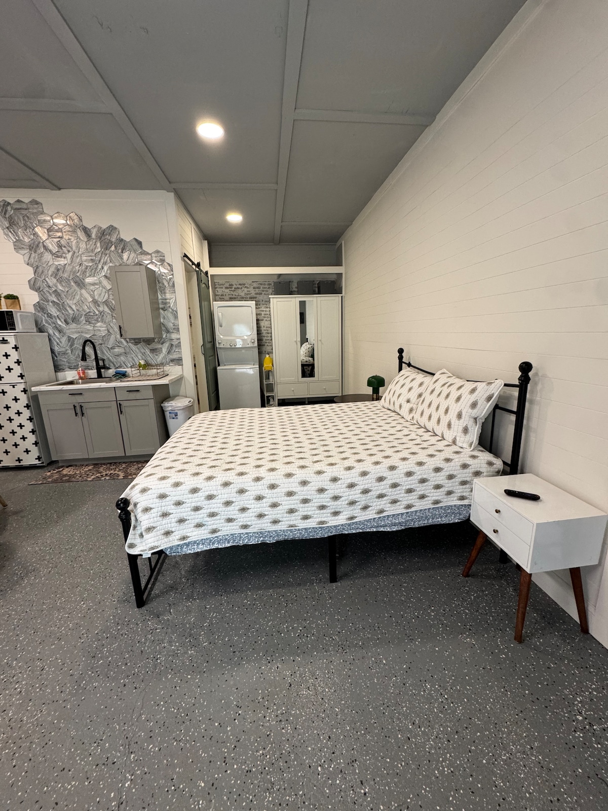 7,5 dönümlük arazideki tenha stüdyo sığınağınıza ulaşmak için ağaçlarla çevrili uzun bir çakıl yolda araba sürdüğünüzü hayal edin. Tepenin içine inşa edildiği için neredeyse görünmeyen özel verandaya sahip bu 1/bd 1/ba stüdyo, huzurlu ve dingin bir kaçış sunuyor. Günlerinizi gölette balık tutarak, ateş çukurunda rahat bir ateşin tadını çıkararak, kurbağaların korosunu dinleyerek veya 7,5 dönümlük geniş alanı keşfederek geçirin. Tüm bu huzur Trilith, Tyrone, PTC, Piedmont Hastanesi, Senoia ve Fayetteville'den arabayla sadece 7 dakika uzaklıktadır.