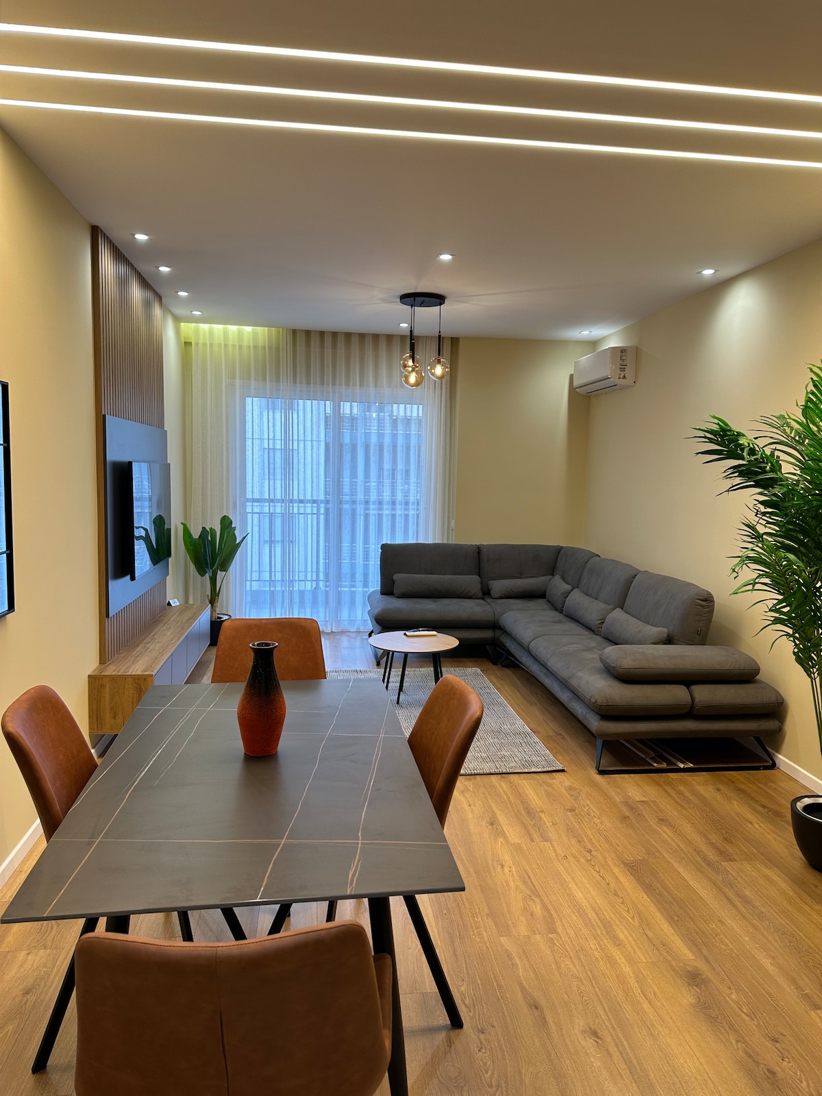 Çok benzersiz bir alandır,çünkü içinde çok konfor, sessizlik, tarz, aile sıcaklığı bulunur ve aynı zamanda Vlora'nın modern merkezine ve plaja çok yakındır, deniz kenarında kolayca yürüyüşe çıkabilir, yüzebilir ve eve geri dönebilirsiniz. Kafeteryalar, stadyum, basketbol ve voleybol oyunları gibi tüm sosyal alanlara çok yakındır. Futbolun keyfini kuma kadar çıkarın. Mutfakta hazırlayarak, kahvenin tadını çıkararak evde yiyin.