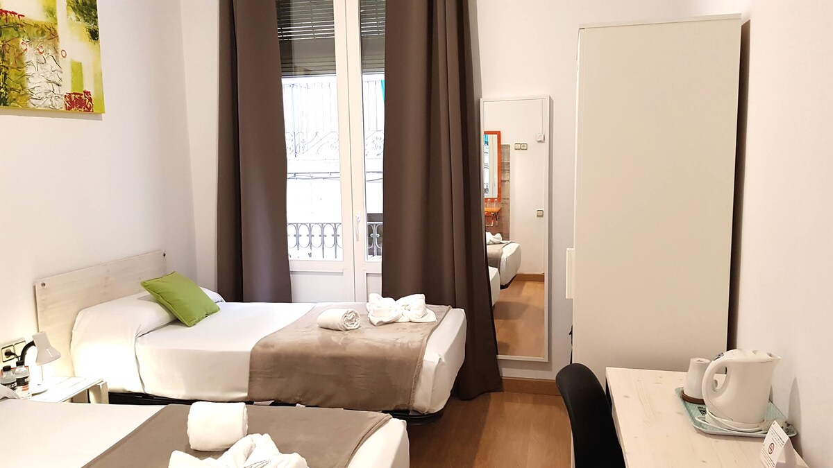 Hostemplo Sagrada Familia'da modern ve samimi dış çift kişilik oda. Tam özel banyo, klima (sıcak/soğuk), TV ve çift kişilik yatak veya iki tek kişilik yatak (istek üzerine, uygunluk durumuna bağlı olarak) ile donatılmıştır. Size kolaylık sağlamak için resepsiyonda sütlü kahve ve atıştırmalıklar sunuyoruz. Her oda aynı tarzı ve konfor seviyesini korur, ancak düzenlerinde veya dekorlarında küçük farklılıklar olabilir.