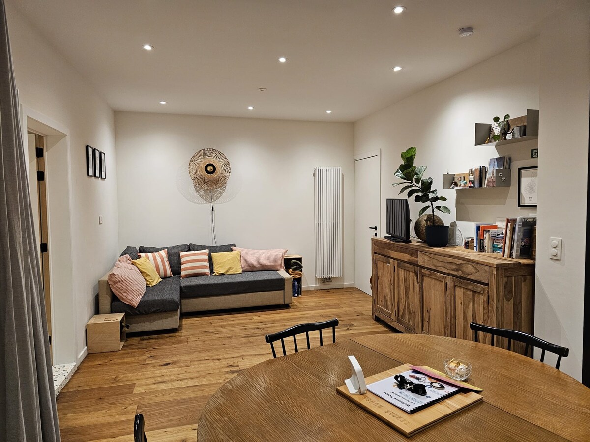 Merkezi konumdaki dairemizden samimi ve canlı Gent'e kolayca ulaşılabilir. Gent - Sint - Pieters İstasyonu'ndaki konum, kapının hemen önünde (1 dakika) tren, tramvay, otobüs ve taksi ile bağlantılarınız olmasını sağlar. Rahat ve güvenli semtte 7/7 süpermarket, mağazalar, barlar, restoranlar, gece dükkanı (hepsi 1 dakikada) ve yakın çevresinde oyun alanı olan yeşil bir şehir parkı bulunmaktadır. Sokak düşük trafikli ve son derece sessiz. Daire her türlü konforu sunar.