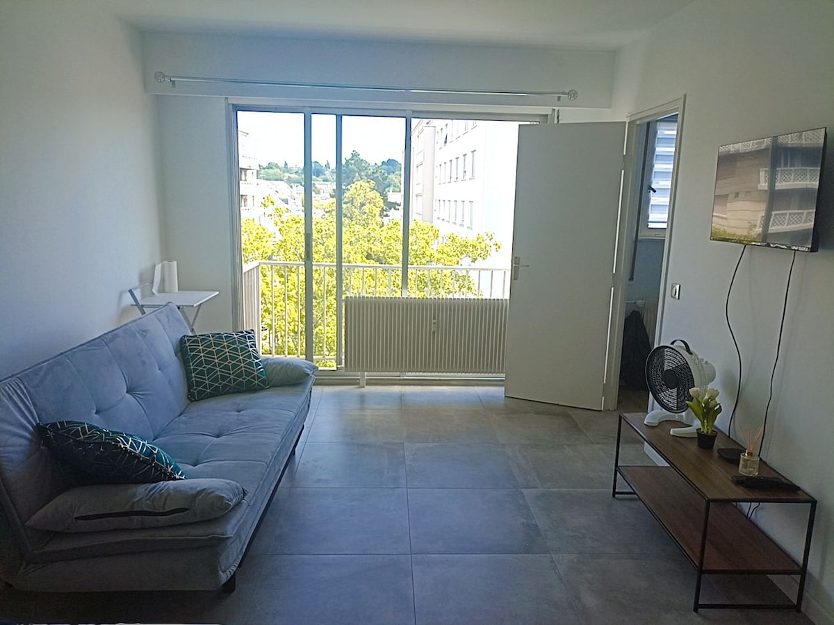 2 yatak odalı daire, tren istasyonuna 2 dakika, şehir merkezine 8 dakika yürüme mesafesinde, ücretsiz otoparkı olan çok sessiz bir sokakta ideal konumdadır. Tam donanımlı bir mutfağa, bulaşık makinesine ve kahvaltı için bir bar alanına sahip güzel bir oturma odası vardır. Bağlı TV ve wifi erişimi olan bir kanepe ve koltuk. Ardından çift kişilik yatak ve gardırop bulunan 2 bağımsız yatak odası İtalyan duşu, makyaj masası ve asılı tuvalet bulunan banyo.