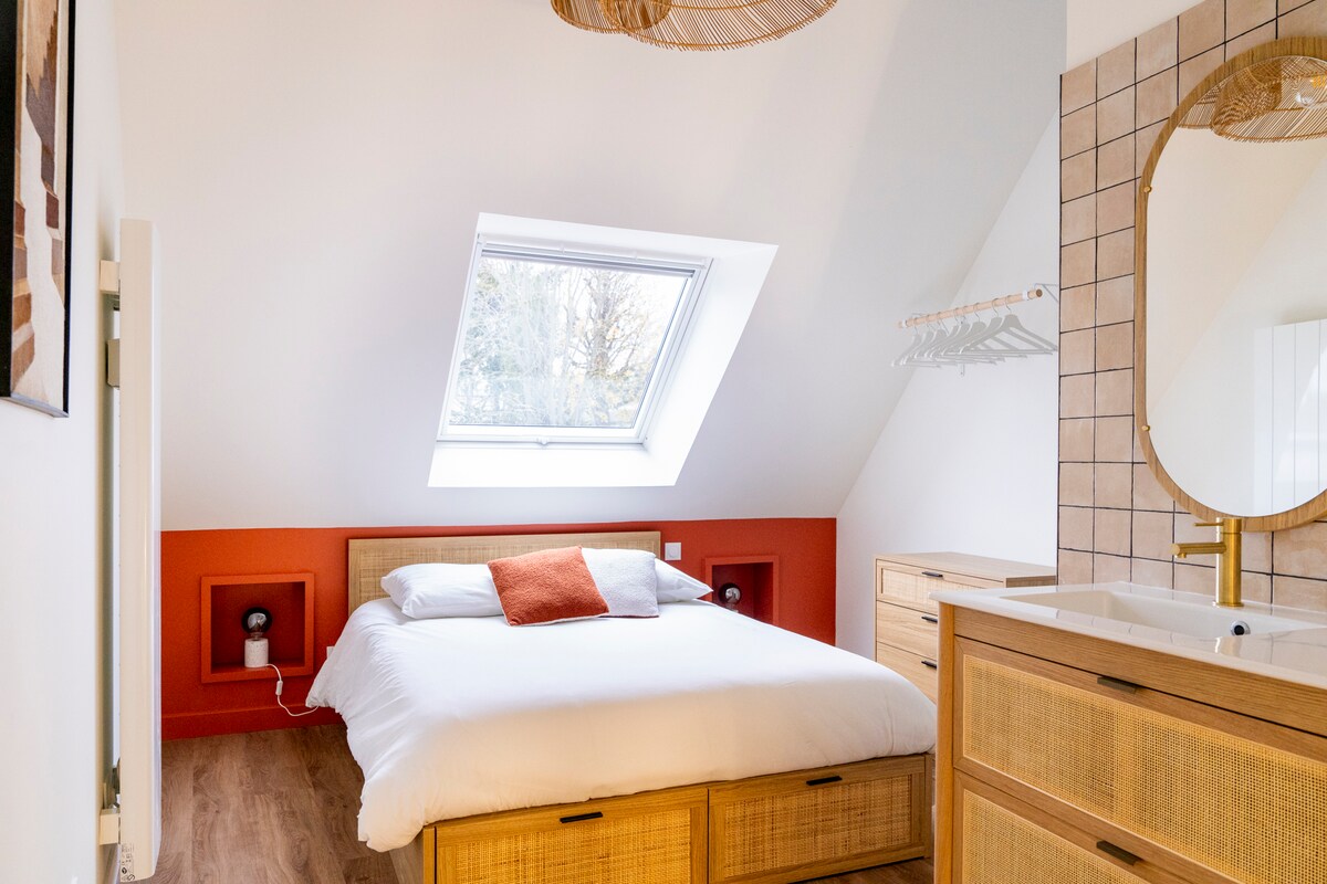 Bu sessiz ve şık mekanda dinlenin Caen şehir merkezine ve tren istasyonuna 2,5 km uzaklıkta bir stüdyoda kalacaksınız. Tramvay durağı (Modigliani) 200 metre mesafededir. Varışta yapılmış çift kişilik yatak, TV, kablosuz internet bağlantısı (fiber), donanımlı mutfak (ocak, buzdolabı, mikrodalga ızgara, Dolce Gusto), duşlu/tuvaletli/lavabolu/havlupanlı banyo, çamaşır kurutma makinesi. Nevresim takımları, havlular sağlanır. Özel teraslı zemin katta yer alır Özel avlumuzda ücretsiz otopark ve şarj istasyonu.