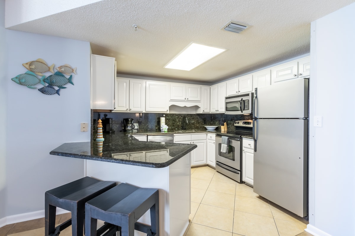 Phoenix X 1410 'a hoş geldiniz. 14. katta sörfün üzerinde yükselen bu Phoenix X konutu, ailenizin denize sıfır inzivası için ideal olan geniş bir 3 yataklı/3 banyolu kiralık tatil yeri sunuyor! Açık kat planı ve klasik sahil dekoru, "Tuz Yaşamı" nı deneyimlemek için mükemmel bir ortam yaratır. Büyüleyici Körfez manzaraları, sarhoş edici tuzlu hava ve ılık bir esinti ile özel balkon sizi rahatlamaya ve pitoresk bir Körfez Kıyısı gün batımını izlemeye davet ediyor.
