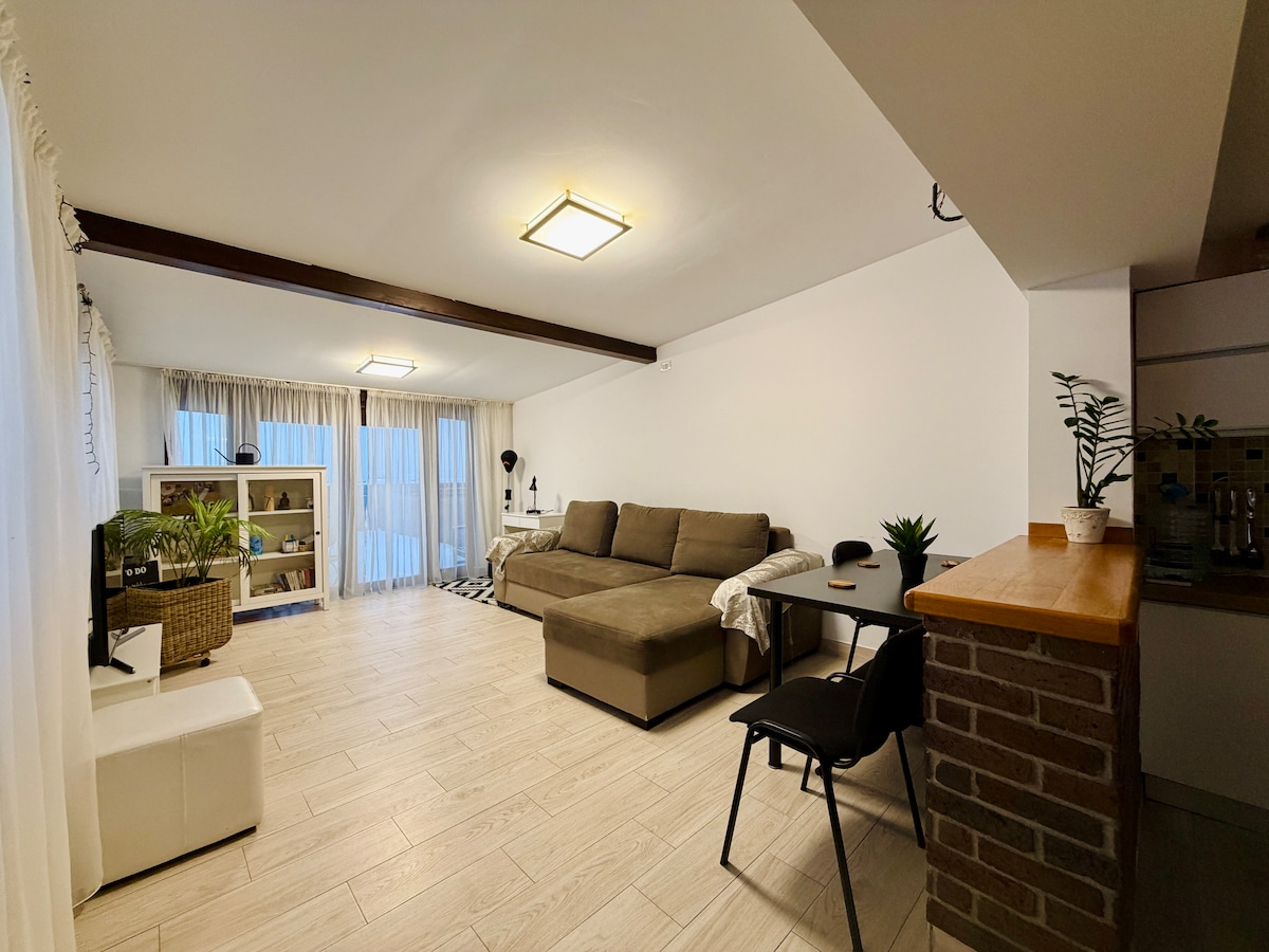 The 1A Modern Apartment'a hoş geldiniz. Cluj'un hemen dışında, rahat ve şık bir yer! Bu aydınlık, modern mekân, çiftler, yalnız maceraperestler veya şehre hızlı erişimi olan huzurlu bir konaklama arayan herkes için mükemmeldir. İki akıllı TV, kolay giriş, ev tarzı yemekler için tam donanımlı bir mutfak ve kahve veya dinlendirici bir akşam için rahat bir kapalı balkonun keyfini çıkarın. Minimalist bir dokunuşla tasarlanan daire sakin, temiz ve bir günlük keşiften sonra enerji toplamak için mükemmeldir.