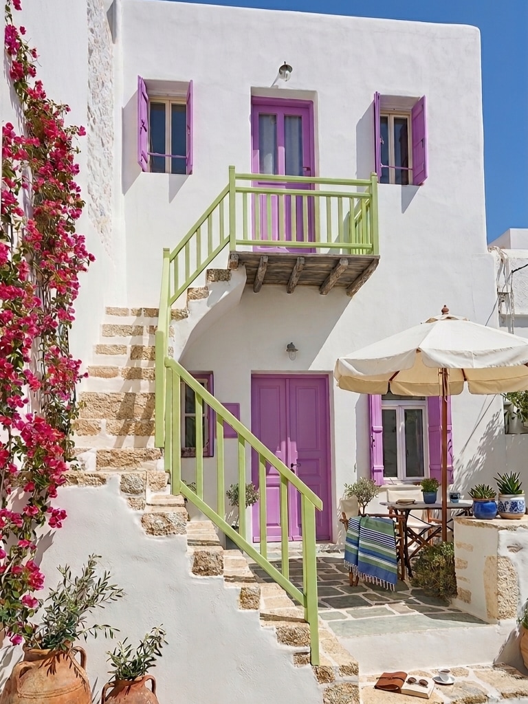 Küçük ve zarif yapı, muhteşem Chora'nın merkezi ama yaya ve sakin bir bölgesinde yer almaktadır; ünlü İtalyan dondurmacı "Lo Zio" nun üstünde ve tavernalardan, barlardan ve tipik mekanlardan birkaç metre uzakta, geleneksel bir binanın birinci katında bulunmaktadır. Otobüs durakları ve plajlara giden ana patikaların girişleri sadece birkaç dakikalık yürüme mesafesindedir. 2017 baharında tamamen yenilenen odalar, Kiklad tarzını eşsiz bir İtalyan dokunuşuyla zenginleştiriyor.