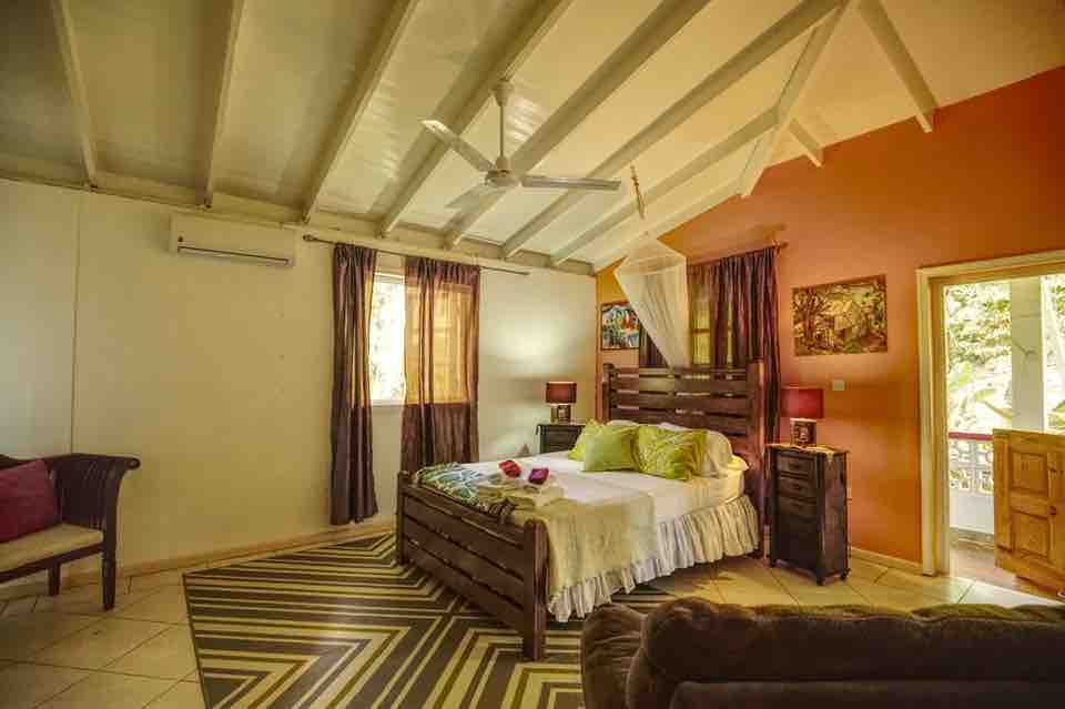 "En Uygun Fiyatlı 10 Karayip Destinasyonu"nda görüldüğü gibi 6 misafire kadar el yapımı, ağaç ev tarzı yamaç kır evi. Uygun konumda Panoramik deniz manzaraları Doğa ile çevrilidir. Üst Kat Stüdyo: Queen ve tek kişilik yatak, ebeveyn banyosu, küçük mutfak, açık hava salonu bulunan birincil yaşam alanı. Alt kat: Queen yataklı ve isteğe bağlı IKEA karyolalı 2. yatak odası, ebeveyn banyosu ve geniş güneşlenme terası. Çiftler, arkadaşlar ve aile için idealdir.