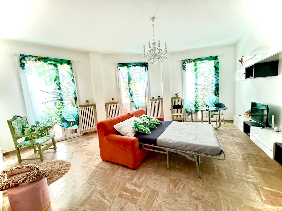 Forlì'nin merkezinde, özel 🚗 park yeri, hızlı 📶 kablosuz internet bağlantısı, 🔑 kendi kendine giriş ve sosyal medya çekimleriniz için 📸 mükemmel çiçek duvarı ve LED yazısı olan fotoğraf köşesi bulunan 100 metrekarelik zarif bir🏡 daire. • 🛏 2 yatak odası (çift kişilik + birleştirilebilen tek kişilik yataklar). • 🛋 Çekyatlı oturma odası + dinlenme alanı. • Tam donanımlı 🍽 mutfak. • Modern ve işlevsel 🚿 banyo İstasyona 📍 8 dakika, Piazza Saffi'ye 3 dakika mesafede. Aileler, çiftler ve uzaktan çalışanlar için ✨ ideal