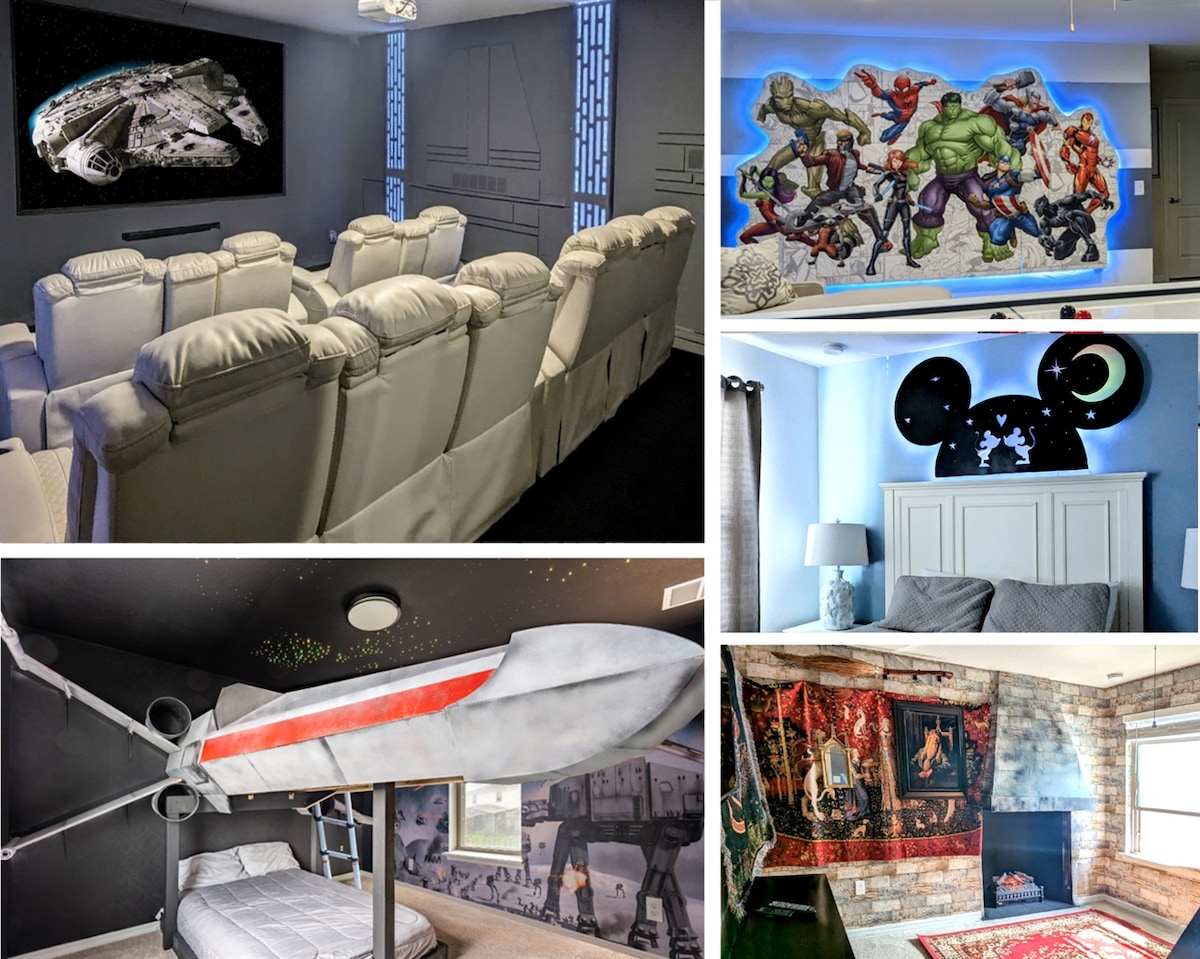 Erken rezervasyon satışımızın keyfini çıkarın ve tasarruf edin! ✨ DONDURULMUŞ ve ÖRÜMCEK ADAM odaları, 4 muhteşem ana süit ve sonsuz eğlence seçeneklerine sahip büyüleyici 6 yataklı bir villa olan Ice Saber Manor'da büyüleyici bir kaçamağı keşfedin! Bir Star Wars SİNEMA SALONU ile kendinizi sinematik harikalara bırakın, KARAOKE alanında favorilerinizi çıkarın veya HAVUZ KENARINDAKİ TİYATROMUZUN tadını çıkarın! Isıtmalı POOL&SPA'nızda dinlenin veya SU Parkımızın keyfini çıkarın! Güzel bir tesiste yer alan bu modern evin konforunda Disney'i keşfedin!