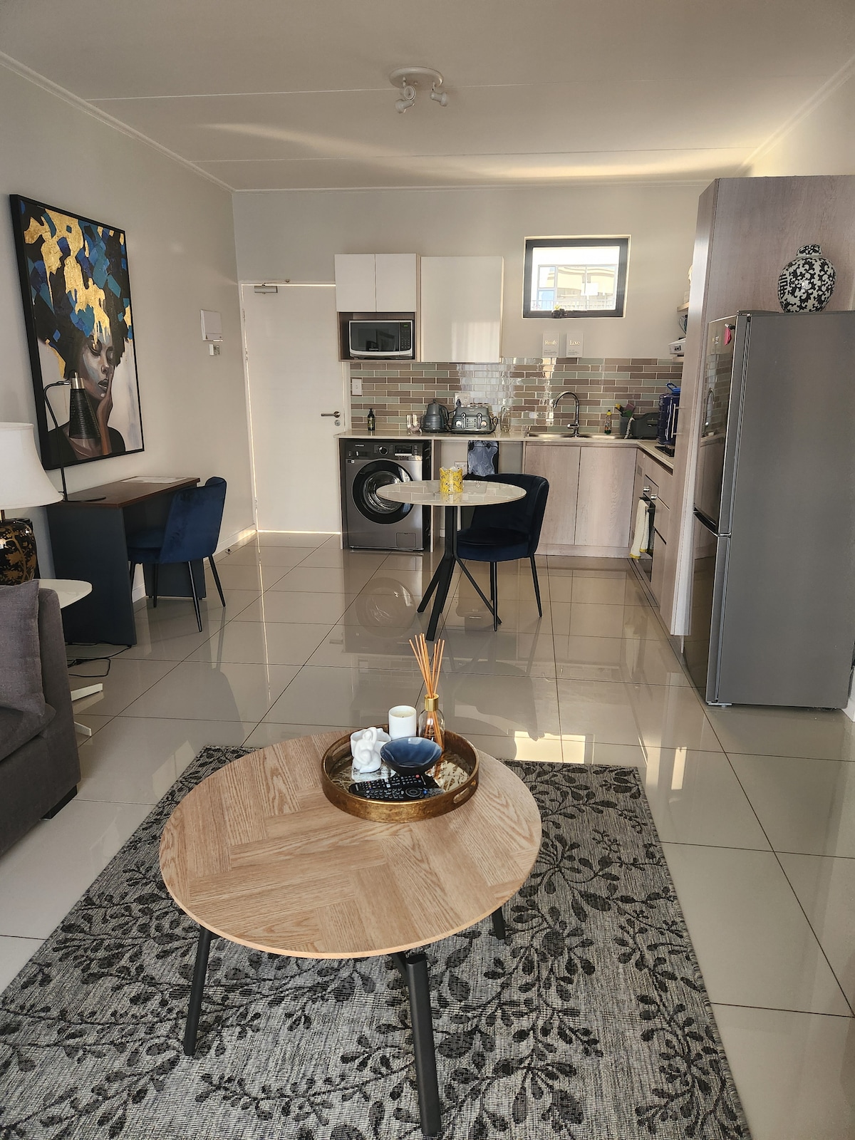 This is a haven of calm where style meets comfort. This is for guests that value elegance in a peaceful, secure serene environment. This suits solo travelers, couples or remote workers. The flatlet has been thoughtfully furnished for warmth and comfort. There is a spacious bedroom with clean linen and a ensuite with fresh towels and toiletries. There is also a separate open plan full kitchen with a dining space and a cozy lounge ideal for unwinding. A dedicated working space is also included.