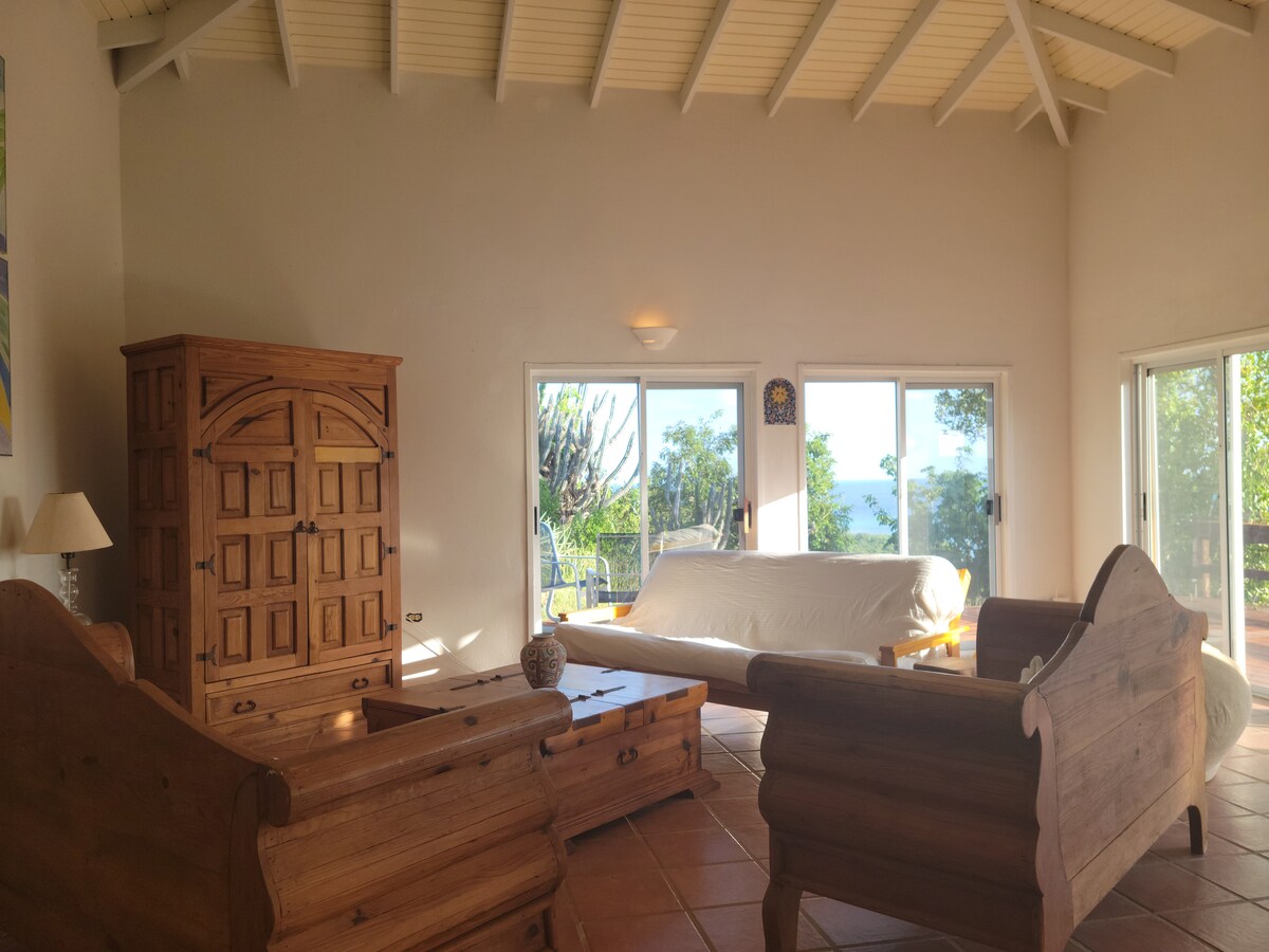 Aydınlık, havadar ve tepenin hemen üstünde. Kasabaya yürüyün, sonra eve gelip muhteşem manzaranın tadını çıkarın. Bu özel 2 yatak odalı/2 yatak odalı gizli yerde klima (queen + 2 ikiz veya king), tam donanımlı bir mutfak, açık planlı yaşam alanı ve gün batımında uzanmak veya kuşlarla yavaş sabah kahvesi yapmak için yapılmış bir veranda vardır. Her yerde körfez, okyanus ve vadi manzaraları. Çamaşır makinesi/kurutucu dahildir. Yerel sanat eserleri ve baştan sona düşünceli dokunuşlar. MiraFlores rahat, renkli ve cennetteki mükemmel eviniz.