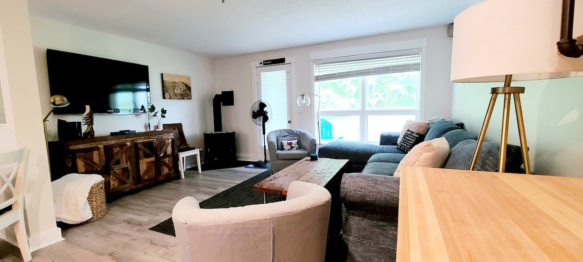 2 yatak odası, 2 banyosu ve 1 çekyatlı Snowbrook Village Condo. 5-7 kişi ağırlayabilir. Gündüz dışarıda vakit geçirmek ve akşamları şöminenin yanında dinlenmek için mükemmel bir yer. Mutfak iyi donanımlıdır, bu nedenle sadece yemeğinizi ve dış mekan ekipmanınızı getirmeniz gerekir. Köyde havuz ve jakuzi bulunan Snubber telesiyejine sadece birkaç adım uzaklıktadır. Kayak/golf ekipmanlarınız için dışarıda dolap. Golf sahası, dağ bisikleti parkurları, yürüyüş ve daha fazlası yakındır. Yazın klimalıdır.