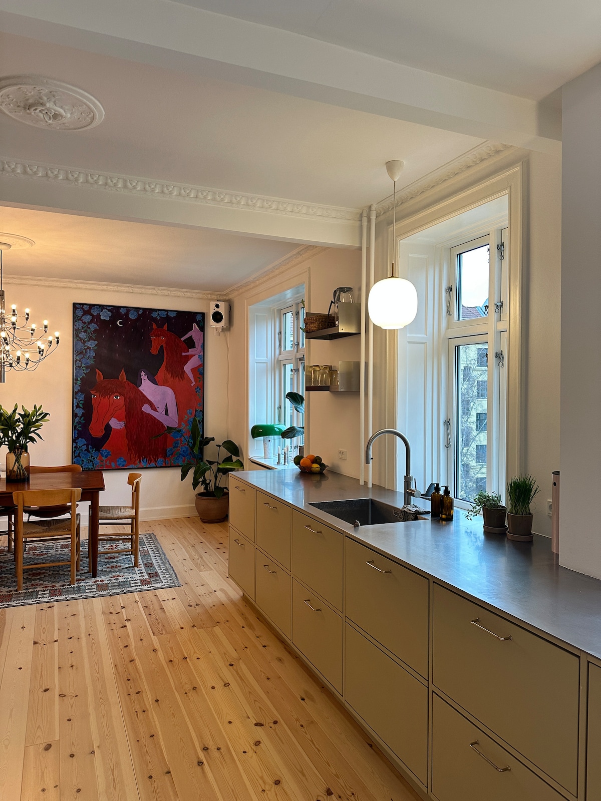 Bu şirin küçük daire, Kopenhag'ın ihtişamını keşfetmek için dışarı çıktığınızda güvenli bir cennettir. İhtiyacınız olan her şeye sahip ve Kopenhag dairelerinden bahsederken kendi cazibesine sahip. Kalabalık şehir merkezinden uzakta, sakin bir bölgede bulunma avantajına sahiptir, ancak hem şehir hattına (otobüs) hem de şehir halkasına (metro) yaklaşık 20 dakikalık yürüyüş mesafesinde bulunmaktadır. ✌🏼