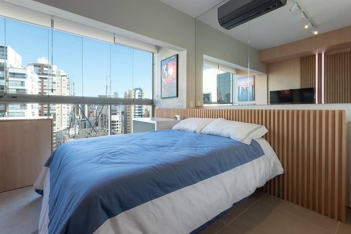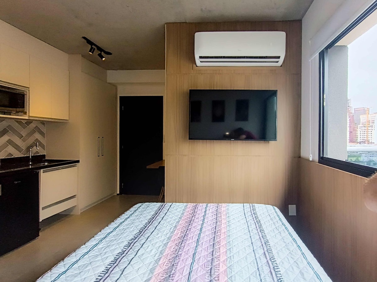 Shop Frei Caneca'ya bir dakikadan daha kısa bir yürüyüş mesafesinde bulunan yeni, sıcak, konforlu, modern ve şık bir stüdyoda konaklayın. Stüdyoda şunlar bulunmaktadır: son derece konforlu bir yatak, tüm alanı hızla soğutan güçlü klima, kablosuz internet bağlantısı, geniş kablolu kanal paketi ve akış uygulamalarıyla akıllı TV, tamamen LED aydınlatma (yatak başında ve banyoda bluetooth ve hoparlörlü renkli aydınlatma dahil); tam donanımlı mutfak, balkon ve çatı havuzu.