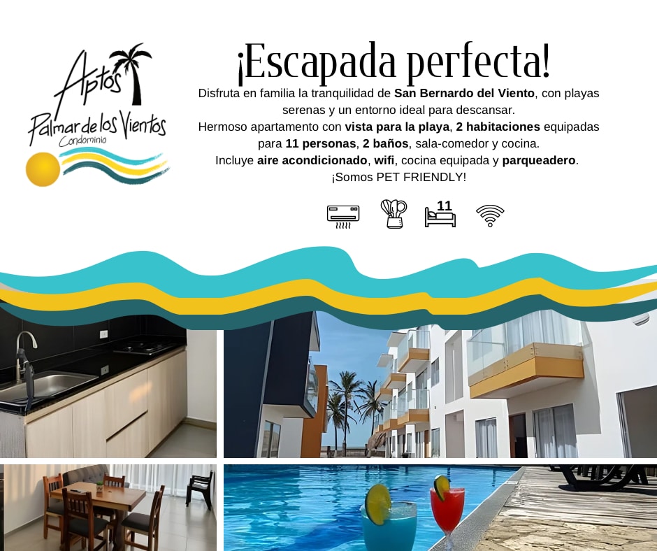 ¡Tu Refugio Ideal Frente al Mar! Disfruta de un sofisticado apartamento diseñado para familias y grupos de hasta 11 personas que buscan confort, tranquilidad y momentos inolvidables junto al mar. Lo que encontrarás: Sala amplia, comedor y cocina totalmente equipada. 3 acogedoras habitaciones y 2 baños completos. Piscina frente al mar del condominio y acceso directo a la playa. Parqueadero gratuito. ¡Haz tu reserva hoy y regálate la experiencia de despertar frente al paraíso!