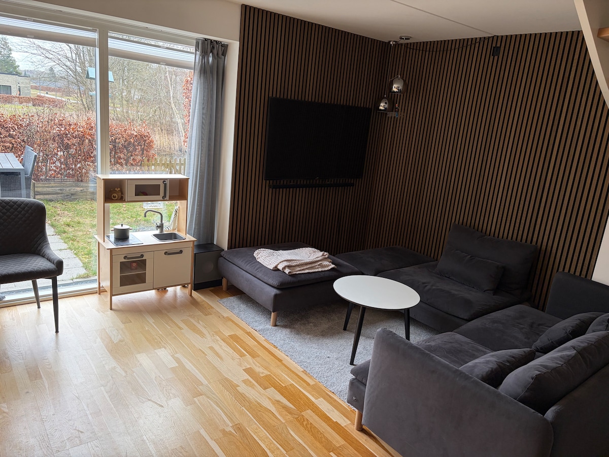 Brand-new 65 m² home for up to 6 guests, free parking up to 2 guest cars in our private parking area, with additional free parking available along the road. Relax in the cozy living room, cook your favourite meals in the modern kitchen, and enjoy time with family and friends in the beautiful garden. We provide towels, bed linens, WiFi, and all essential amenities and warm hospitality to ensure a comfortable stay comparable to a 4-star hotel ! Enjoy your stay at LYKKE Garden Home !