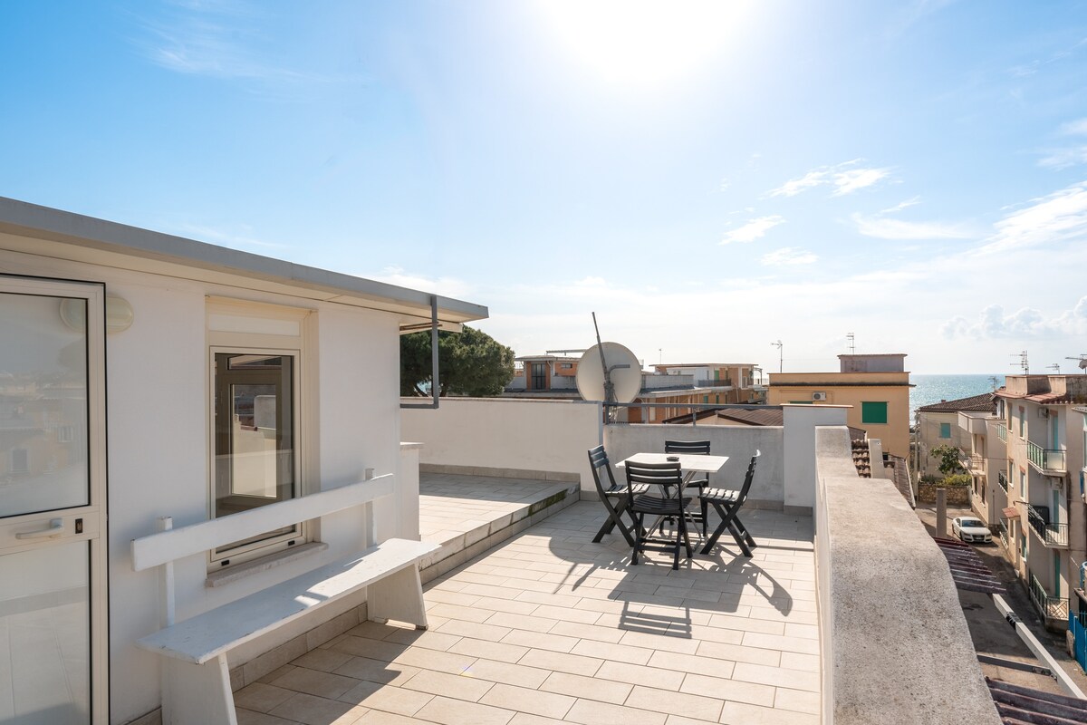 Gaeta merkezinde çatı katı, 360° deniz manzaralı teraslar