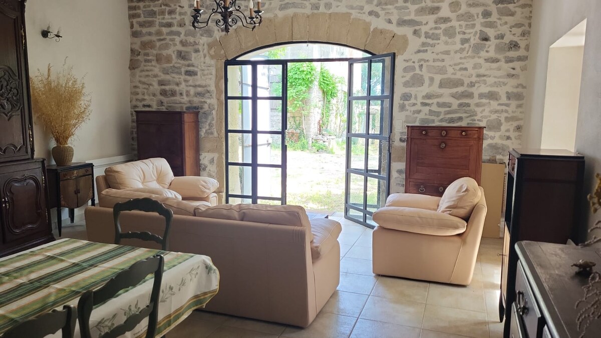 Cévennes ve Camargue arasında, boğa güreşi geleneği olan otantik bir Gard köyünün tarihi bölgesinde, eski ve çağdaşı uyumlu bir şekilde birleştiren, zevkli bir şekilde yenilenmiş 18. yüzyıldan kalma bir konut. 10 dakika yürüme mesafesinde: su merkezi, nehir, yeşil yol, pazar ve tüm mağazalar. 80 m2 kapalı teraslı büyük oturma odası. Güzel peyzajlı bahçe. Çok rahat. Kanal klima. Aileler veya arkadaş grupları için mükemmeldir. Birinci sınıf olanaklar. Ücretsiz otopark.