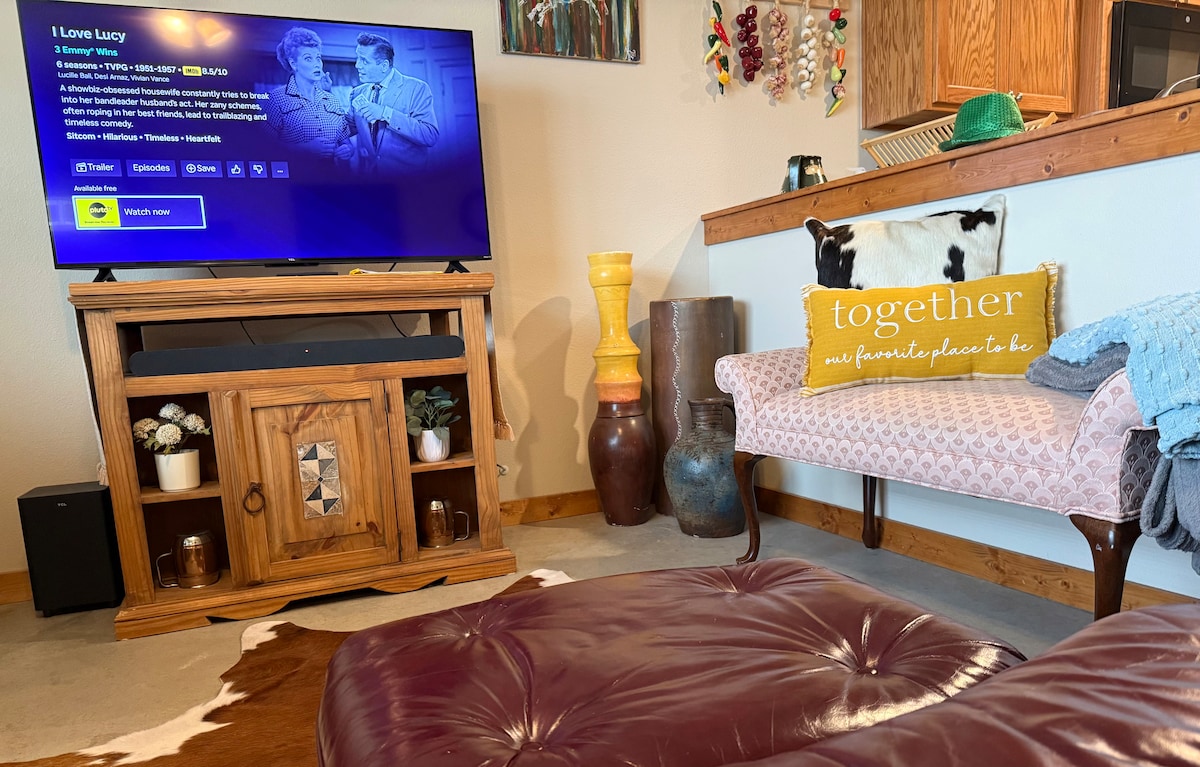 3 mini evcil eşekle 28 dönümlük bir alanda yer alan "The Little Ass Apartment"a hoş geldiniz. Bu dairede iç veya dış mekanlarda dinlenmek için ihtiyacınız olan her şey var. Tam donanımlı mutfak, oturma odası, banyo, çamaşır makinesi/kurutucu ve geniş yatak odası bulunmaktadır. Dışarıda büyük bir çitle çevrili bahçe, oturma yerleri olan bir ateş çukuru ve gün doğumu ve gün batımı manzaralı bir verandası var! Çamaşır makineleri ve mısır deliği ile arka bahçe eğlence alanının keyfini çıkarın!