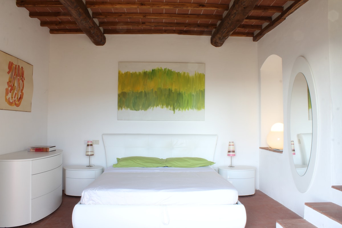 Villa Padronale'nin yeni yenilenmiş geleneksel Toskana tarzı üst katı. Yüksek tavanlar ve görünür kirişler, mekanı aileler veya arkadaş grupları için sıcak ve mükemmel hale getirir. Evde iki büyük işlevsel şömine (oturma odasında ve mutfakta) bulunmaktadır. Özel konaklama, paylaşılmaz. Evin geniş bir kapalı terası, kanepeli bahçesi, barbekü alanı, ateş çukuru, özel otoparkı bulunmaktadır. Zeytin ağaçları ve üzüm bağları arasındaki havuz, ortak alana özel erişimi ile dinlenmek için idealdir.