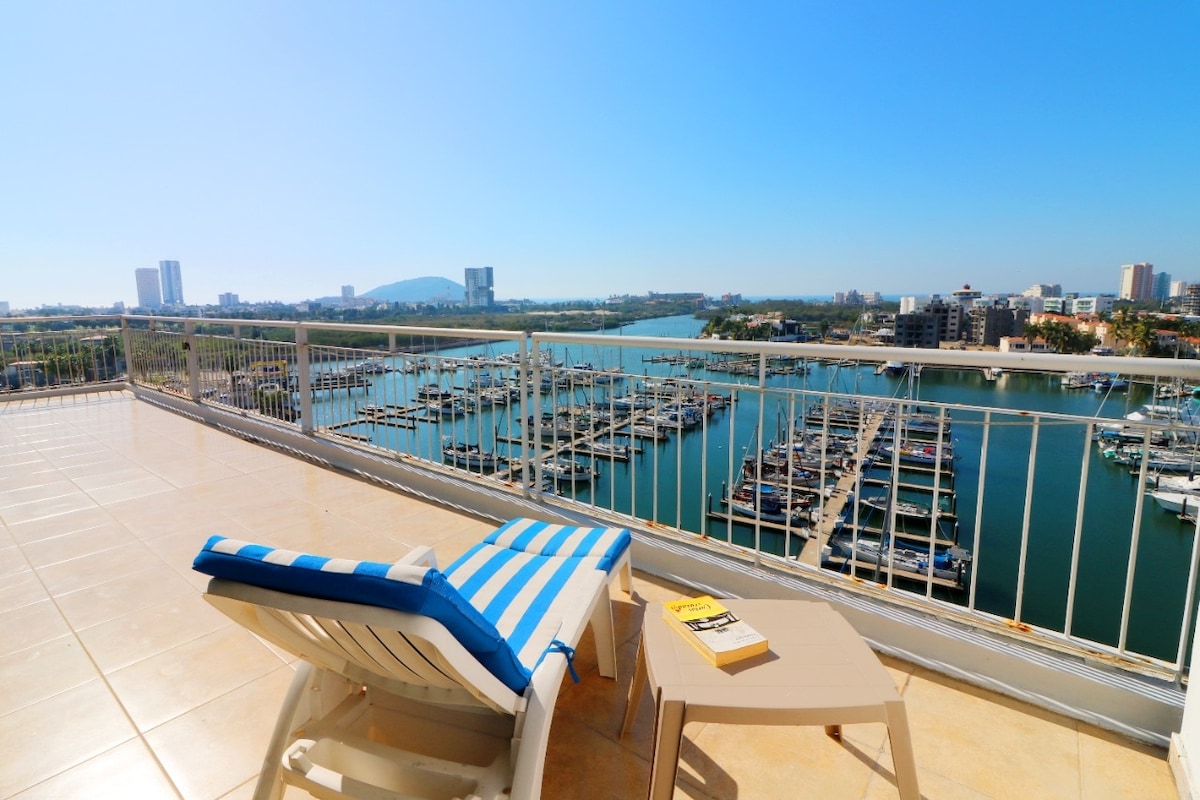 Marina Mazatlán'daki muhteşem dairemize hoş geldiniz. Balkonumuzdan iki yatak odası, 1 banyosu ve muhteşem deniz manzarasıyla Mazatlan tatiliniz için mükemmel bir yerdir. Site içi dairede süper bir konaklama için ihtiyacınız olan her şey var, modern mutfak ve düz ekran TV. Binada açık havuz, jakuzi, spor salonu ve 24 saat güvenlik bulunmaktadır. Bugün rezervasyon yapın ve Marina Mazatlan'daki en iyi konaklamanın keyfini çıkarın.
