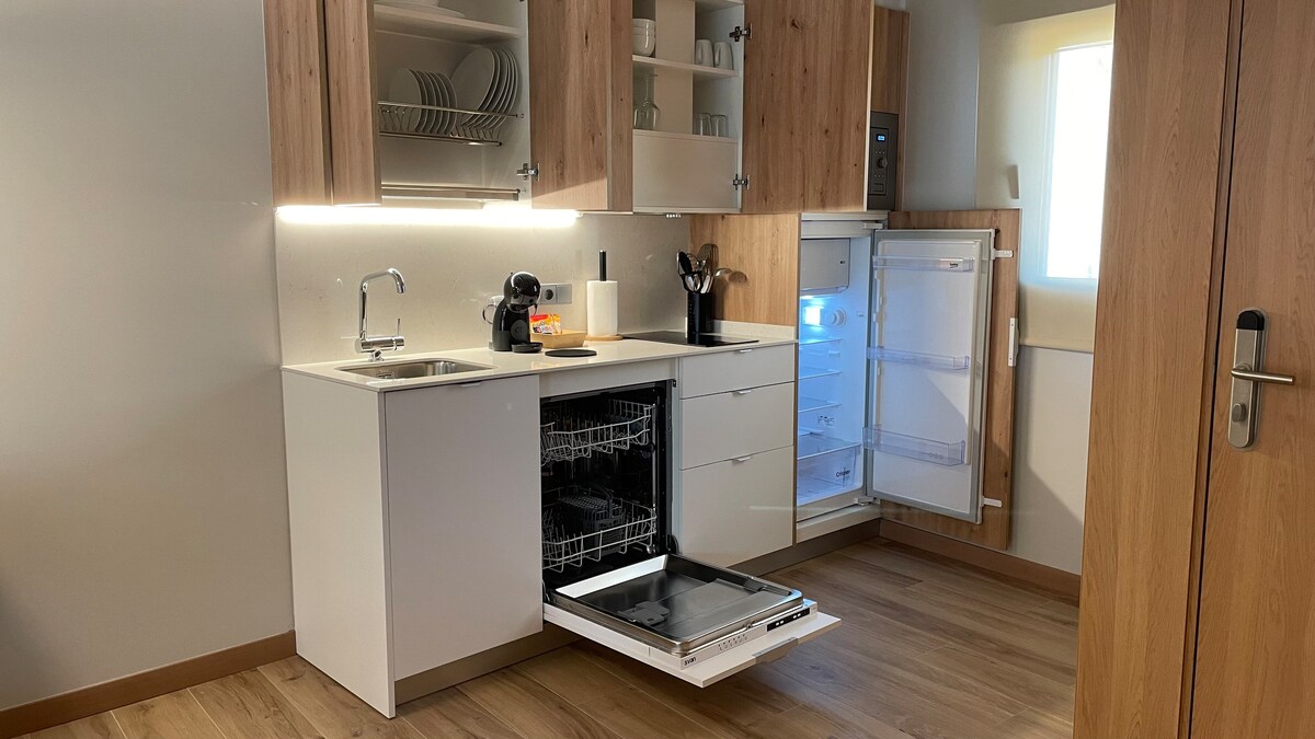 Bu sakin ve zarif konaklama yerinde rahatlayın ve kendinizi dinleyin. Daire, donanımlı mini mutfak ile açık konseptte tüm ekipmanlardan oluşmaktadır. Ayrıca, dairede konaklamayı daha keyifli hale getirecek geniş bir yuvarlak jakuzi ve buhar banyosu sistemli bir duşakabin bulunmaktadır. Bu daire bir çift için idealdir, ancak kanepe rahat bir yatağa dönüştüğü için 2 çocuk daha barındırabilir.