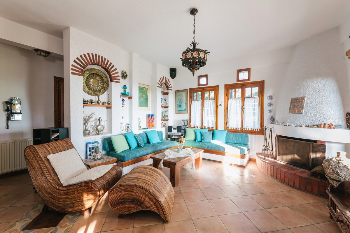 1955 yılında bir aile evini restore ettik ve yerel, geleneksel unsuru modern yaşam biçimiyle birleştirdik. Arsa, Bizans'ın Toroni kalesi ve ünlü kıyısının karşısındaki bir tepede yer alıyor. Villa sınırsız deniz ve dağ manzaraları sunar. 500 metrekarelik yeşil bir alan ve gerçek dinlenme için uygun şekilde düzenlenmiş bir alan sağlar. Yakın olduğu ve aynı zamanda çoğundan uzak olduğu için konum kelimenin tam anlamıyla benzersizdir.