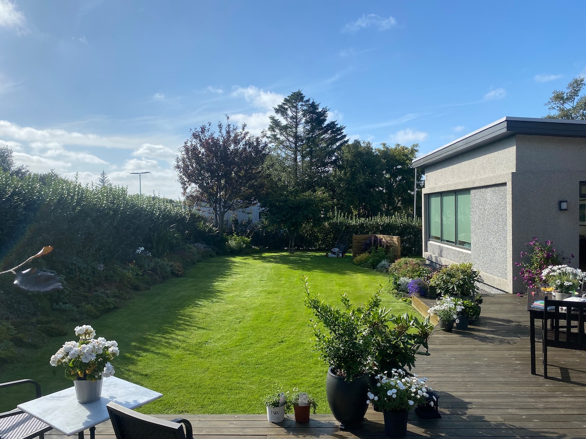 Özel bahçesi ve jakuzisi olan aileler ve arkadaşlar için uygun güzel ve aydınlık bir tasarımcı evi. Ev, 2 yatak odası ve bir çocuk odası ile üç katlıdır. Bodrumdaki boş yatak odasında ekstra queen boy bir şilte vardır. Burası, çok güzel açık hava etkinliklerine yakın ve toplu taşıma veya araba ile şehir merkezine yakın, şehrin sessiz bir yerleşim alanıdır. Rahatlamak için mükemmel ve İzlanda'yı keşfetmek için bir üs.
