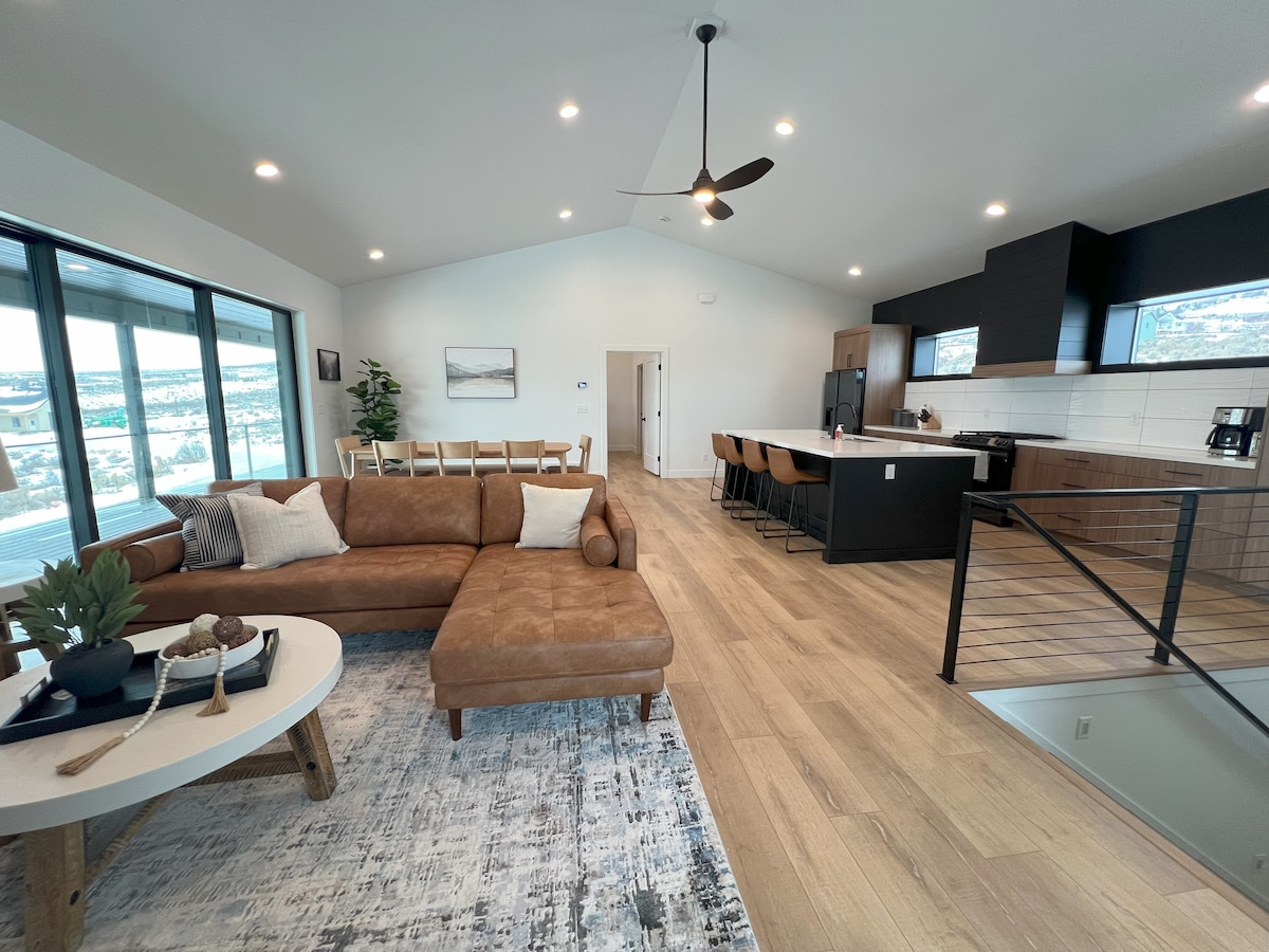 BlackRidge LakeHouse - where you can enjoy amazing views of Bear Lake! Come relax in this calm, stylish space. This 3 bedroom, 3 bathroom home with stunning views of the lake will take your breath away! Every detail has been thought of. You get Ideal Beach Access so you can swim in the pools, relax in the jacuzzis, or play on the beach. Come home and relax on the deck, play cornhole, or basketball. There's even a bunkroom for the kids! Come out and enjoy the best of what Bear Lake offers!