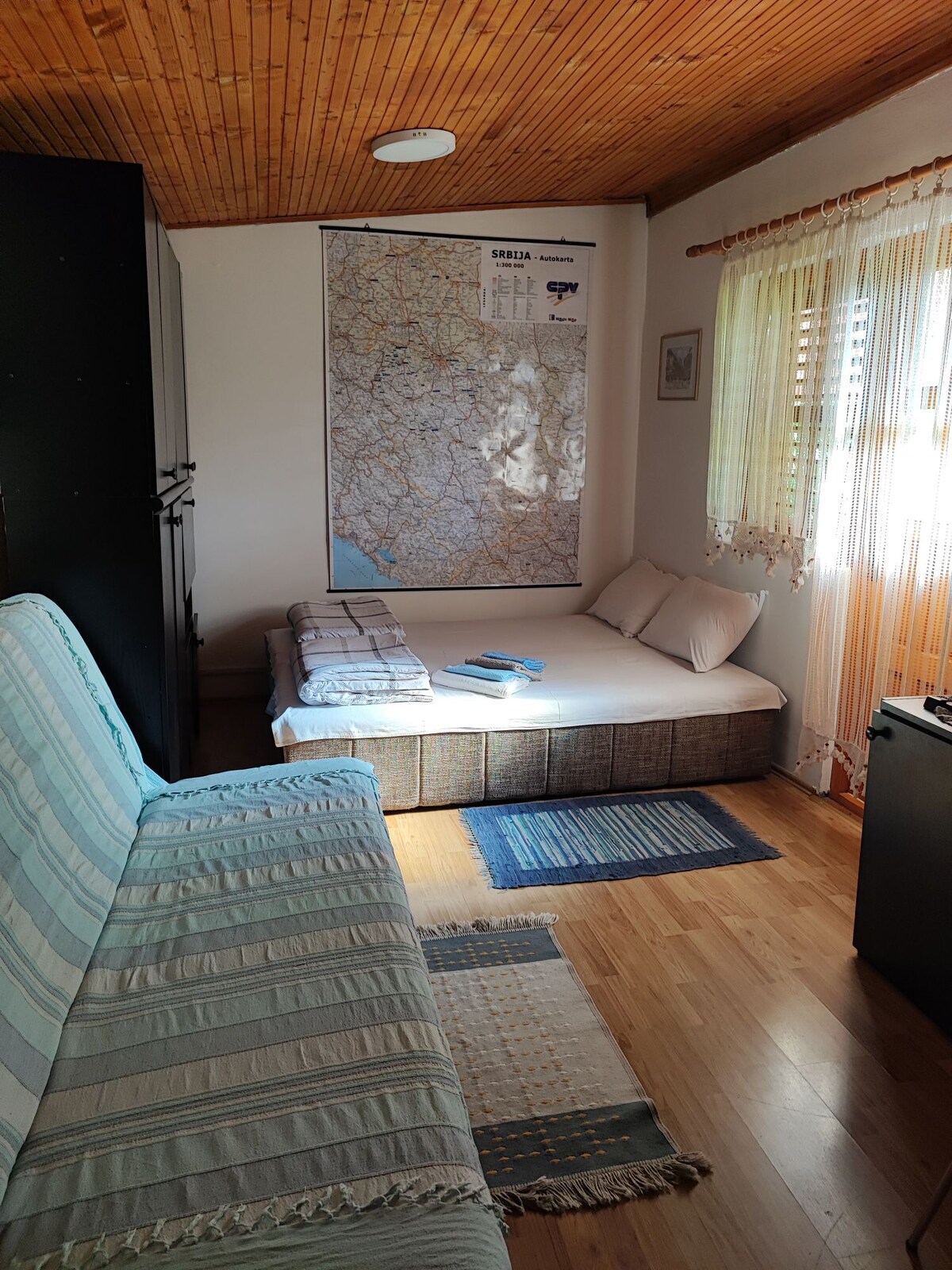 Aileniz veya arkadaşlarınızla, doğayla çevrili, Belgrad'a yaklaşık 50 km uzaklıkta, Tuna Nehri kıyısında, ancak ücretsiz kablosuz internet bağlantısıyla dünyaya bağlı Villa Kornelija'nın keyifli ambiyansında unutulmaz zaman geçirin. Manzara, Tisa ve Tuna olmak üzere iki nehrin birleşmesini içerir. 80 m2'lik alanda oturma odası, banyo, mutfak ve üst katta 2 yatak odası bulunmaktadır. Misafirler şöminenin yanında oturmanın keyfini çıkarabilir. Nehre bakan mülkün her yerinde yürüyüş yolları vardır. Klima, uydu TV, kablosuz internet bağlantısı dahildir.
