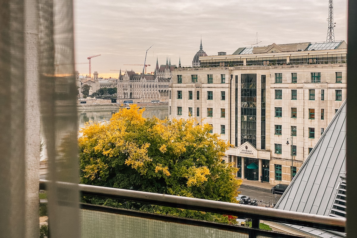 Budapesting'den Liszt Academy'de şehir silüeti manzaralı çatı katı