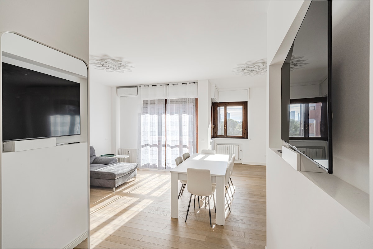 Bu daire, en ince ayrıntısına kadar düşünülmüş olup konaklamanızı benzersiz kılacaktır. Birçok hizmet, mağaza, süpermarket, bar, restoran, ATM bulabileceğiniz PORTELLO alışveriş merkezine 100 metre mesafededir. Milano fuar alanına ve City life'a iyi bir şekilde bağlanmış olup, taksi durakları ve toplu taşıma araçları ile iyi bir şekilde hizmet vermektedir. Daire, iş amaçlı konaklamalar, fuar ve sergi ziyaretçileri veya turistler için mükemmeldir.