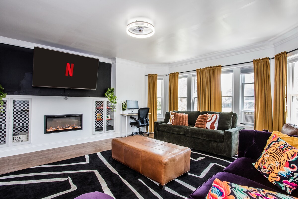 Bu ferah Chicago dairesinde modern lüksü deneyimleyin! Bu 2 yatak odalı, 2 banyolu, tek katlı evde şef mutfağı, ebeveyn banyolu kral yatak, garaj otoparkı, 1. seviye elektrikli araç şarjı ve çatıdan muhteşem şehir manzarası bulunmaktadır. Aileler ve gruplar için mükemmel, merkezi konumda, United Center yakınında ve McCormick Place'e sadece 10 dakika mesafede. Çekyatlarla en fazla 8 misafiri rahatça barındırabilir. Sokak seviyesinden basamaksız erişimin ve her yerinde 3 metrelik yüksek tavanların keyfini çıkarın.