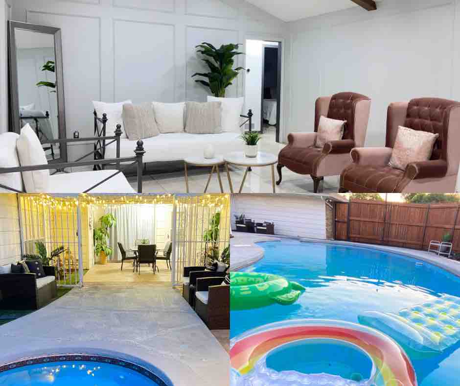 Jakuzi ve gölgelikli✨ özel havuz kenarı kaçamağı! Gölgeli havuzu☀️, köpüklü jakuzisi, sıcak şöminesi💦, tam donanımlı mutfağı🔥 🍳, hızlı kablosuz internet bağlantısı ve akıllı TV'leri olan bu huzurlu, aile dostu evde dinlenin. Aileler, çiftler veya iş için seyahat edenler için mükemmel. Kapalı otoparkın, ev içi çamaşırhanenin ve parklar, restoranlar ve alışveriş merkezlerine yakın birinci sınıf bir konumun keyfini çıkarın. Konfor, kolaylık ve tam bir rahatlama için tasarlandı. Kendinizi evinizde gibi hissedeceksiniz! 🏡