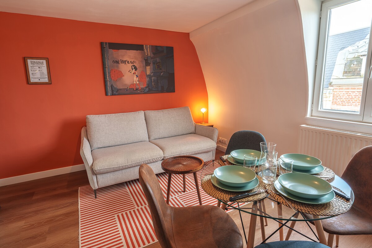 Tarihi Saint-Quentin kasabasının göbeğinde bulunan zarif bir stüdyo olan The Gold'a hoş geldiniz. Bu stüdyo, doğal ışığın içeri girmesini sağlayan bu 2 büyük pencere sayesinde size geniş, aydınlık bir alan sunar. İster bir iş seyahatine çıkıyor ister tatilde olun, size keyifli bir konaklama sunmak için tasarlanmıştır. Sıcak ve bakımlı bir atmosferde konaklamanızın tadını tam olarak çıkarmak için ihtiyacınız olan her şeyi içerir. Şehrin eğlence merkezinde bulunan bu stüdyo, şehrin tadını tam anlamıyla çıkarmanızı sağlar.